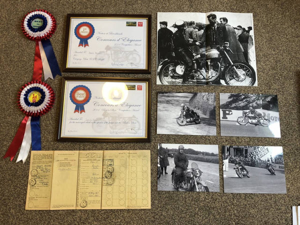It Was Originally Sold By A Norton Dealer In Wakefield Where It Was Raced By Clifford Stonsor Parkinson In The 1953 Clubman's TT Where He Finished 32nd (72.89 MPH) Before The Sale. It Was A Norton Imposed Proviso , That These Were Only Suppled To " Race Approved " Dealers And Agreed To Be Raced In The Manx TT, Prior To Being Offered For Sale To The General Public. The Norton Also Raced In The 1955 Clubman's TT By Denis Pratt.
