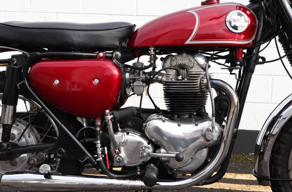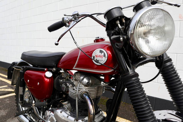 1965 Norton N15 CS 750cc with matching numbers,  in beautiful condition . Starts very easily as has Mikuni carb and comes with original good twin carbs and air filter if preferred. Ticks over runs well with a really sweet running engine and rides very well too ; has the upgraded Commando TLS front brake; original comes with it. This is now a rare model with the bullet proof Atlas engine and Roadholder forks . Comes with high level pipes too , your preference.. This example is the best cosmetically and mechanically we have seen for a very long time and should provide its new keeper with great fun and is a very good investment.