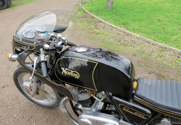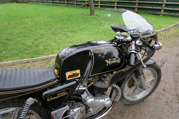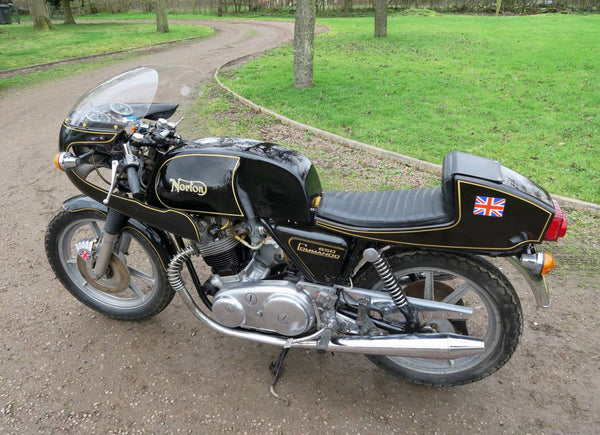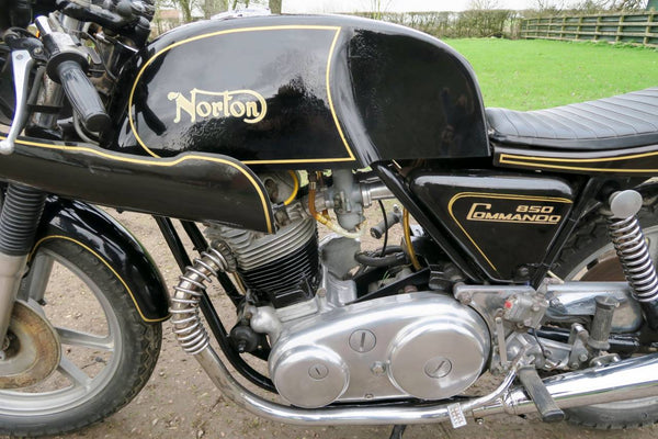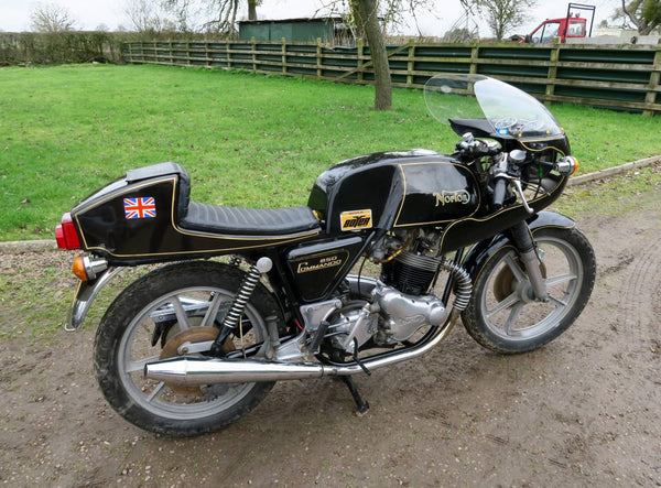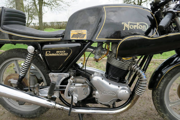 Norton Commando 850 1974, In Cafe Racer Guise, With Only 2 Previous Keepers And Matching Numbers. Strong, Mechanically Quiet Motor, With Only 23000 Miles On The Clock. With Special Light Weight " Smag "Wheels. A Nice Period Cafe Racer, That Could Easily Be Converted Back To Standard Spec, If Required By Replacing The Petrol Tank And Seat With Say Roadster Spec, At £320 + vat From Norvilles .. Then You Can Decide The Colour Of Your Choice ! Tax Exempt, Due For An MOT and Service .