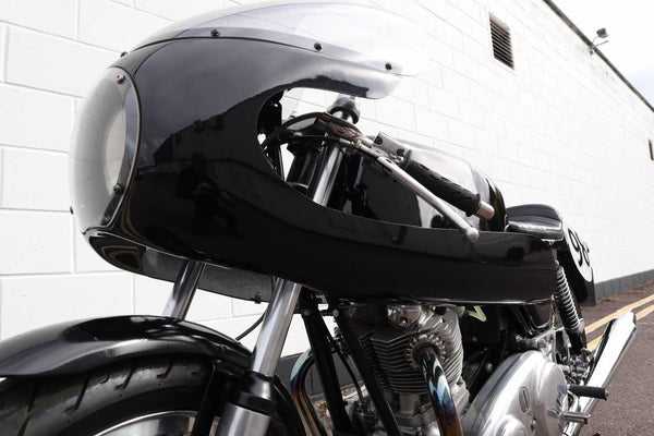 Owned by the current owner since 1994. Converted from bitsa to stunning production racer replica in 2006. Lots of receipts, many upgrades like electronic ignition, mk 3 isolastics, alloy tank & new Amal carbs. Starts, ticks over & runs beautifully.