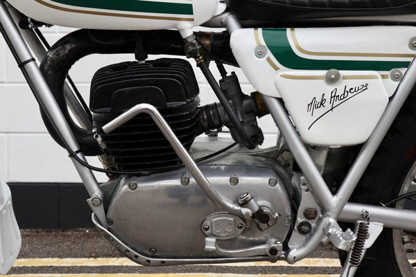 1974 OSSA Mick Andrews Replica 250cc. Road registered with current log book. In great condition having been well looked after by the previous keepers. Recent work includes: New fork seals, new rear tyre, rebuilt stator and carb strip. Ready to ride and enjoy.