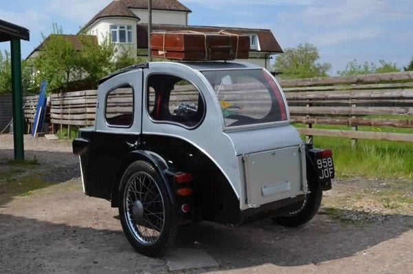 Rebuilt in 1979 won numerous awards up till 1982 then kept under raps till around four years ago when it was put back on the road with a period Busmar sidecar .