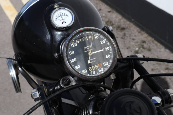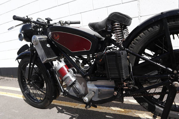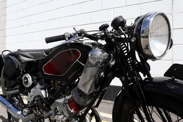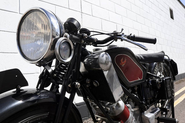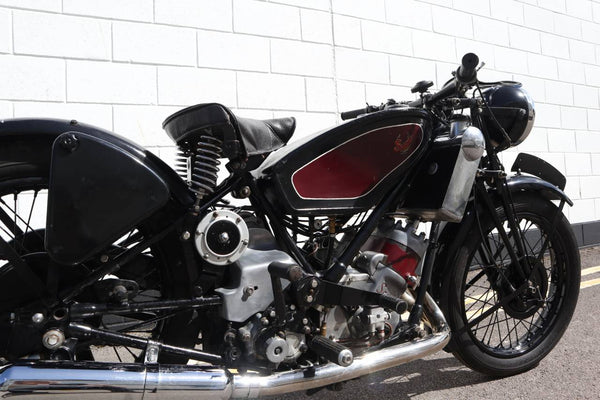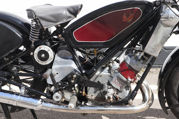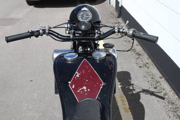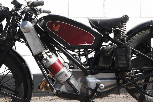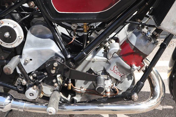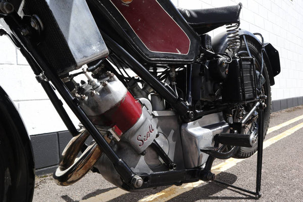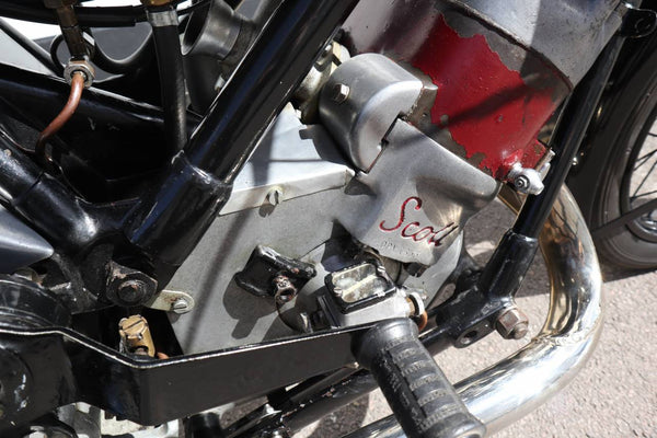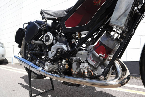 1938 Scott Flying Squirrel 600cc. A very original rigid/girder fork example in good usable condition. Comes with the original buff log book which confirms the engine and frame are original for the bike. Also has lots of receipts for work carried out recently which includes one for the mag which has been reconditioned. Runs and rides well, a rare bike in and looks to be completely original !!