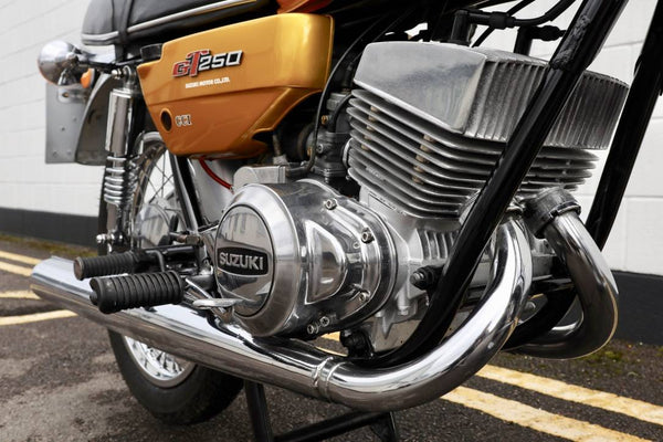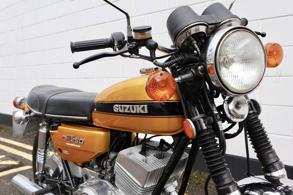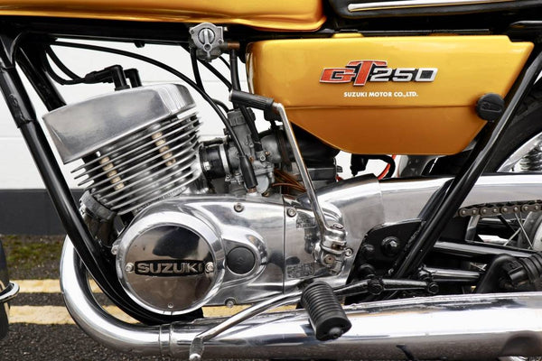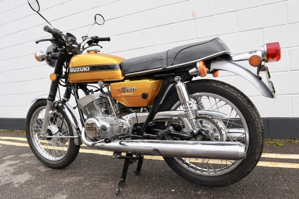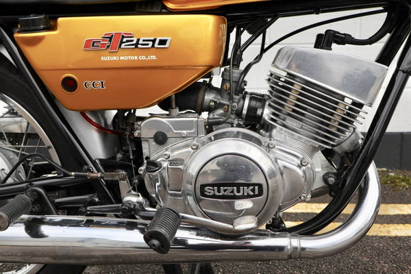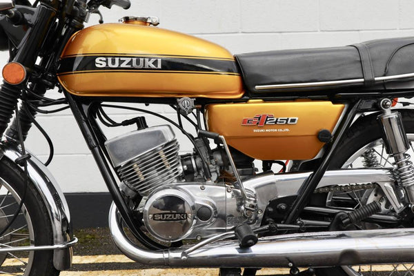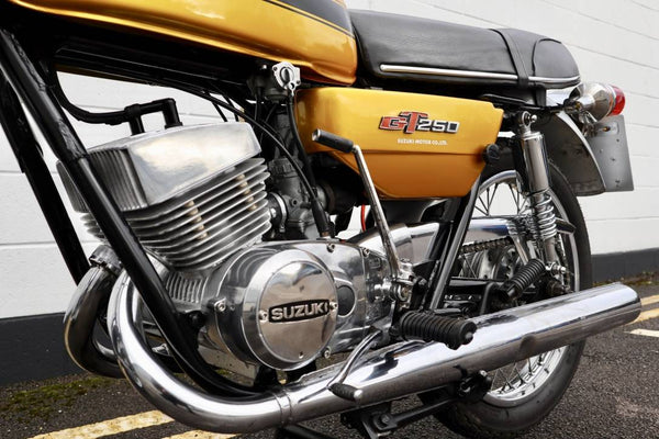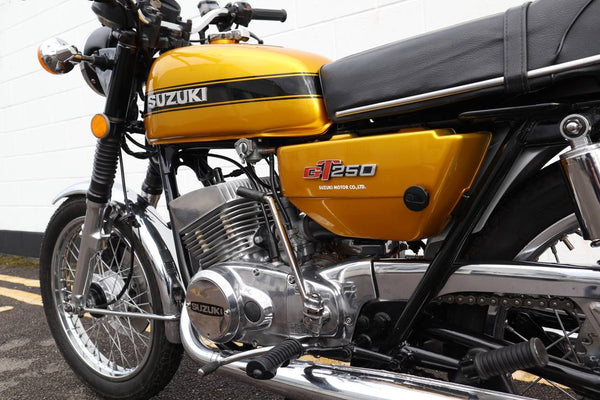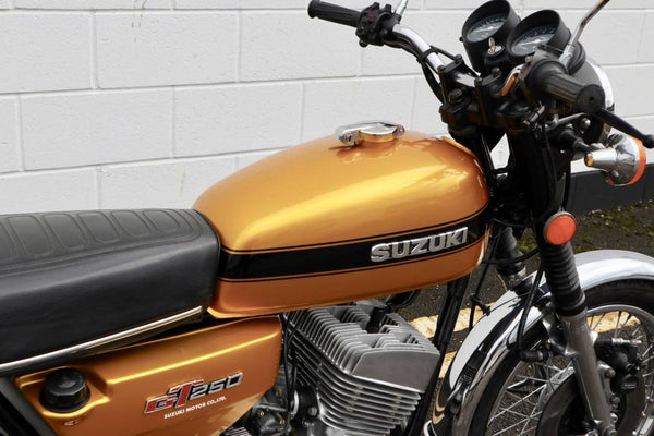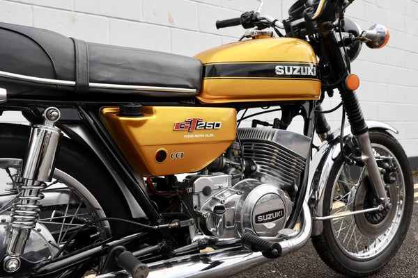 1976 Suzuki GT250. This is an original UK example with just under 20,000 miles on the clock. In lovely condition looking to have been repainted recently. It looks to be all original including the rims and exhausts. Runs and rides well with everything working as it should. Comes with a current log book and Ready to ride.