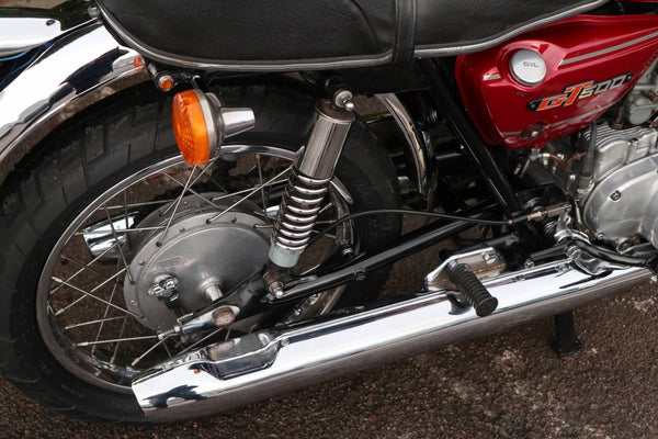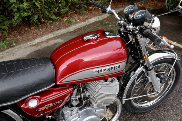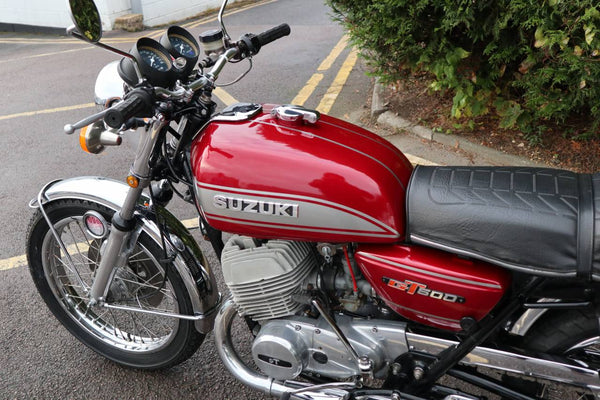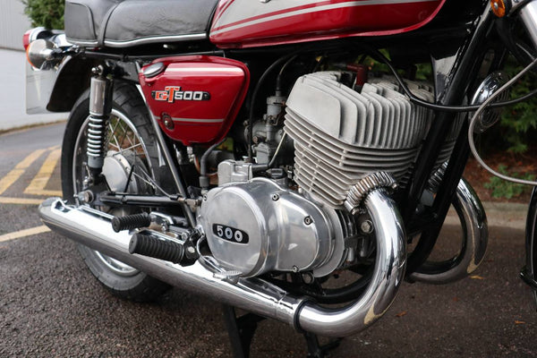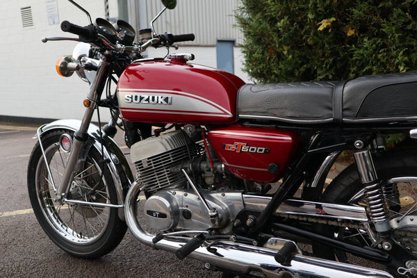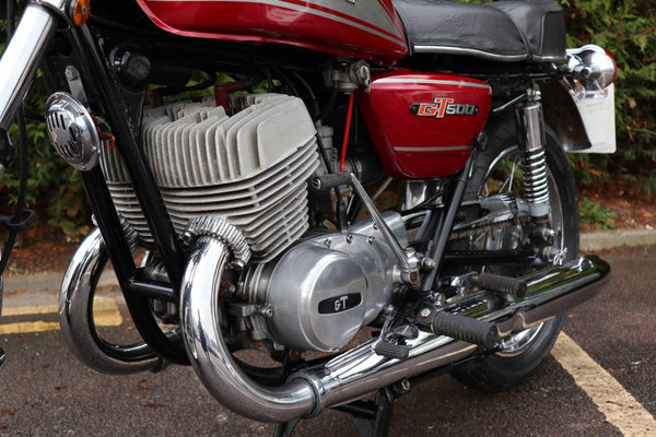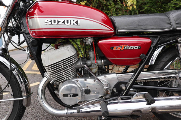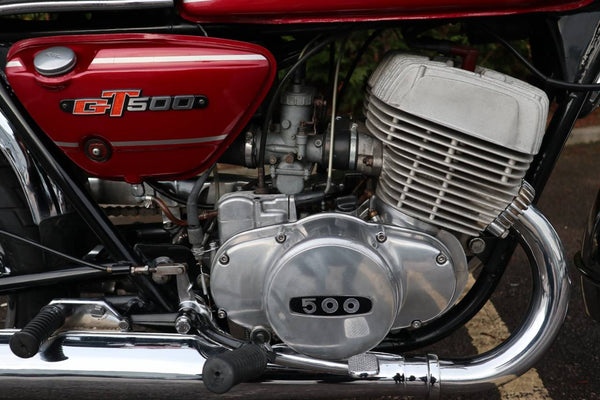 1976 Suzuki GT500. In good usable condition with nice metal work. The motor is sweet and strong with lots of torque. Starts easily with one kick and rides very well too. This is a nice usable example with room to add value with a bit of cosmetic work. A great investment!