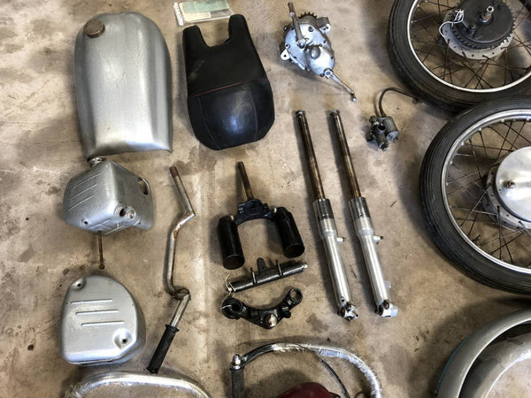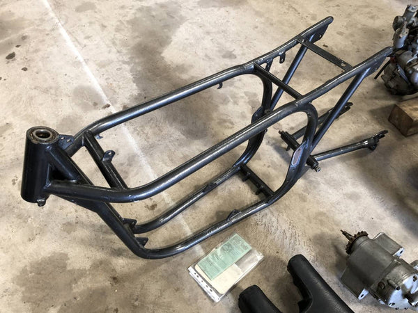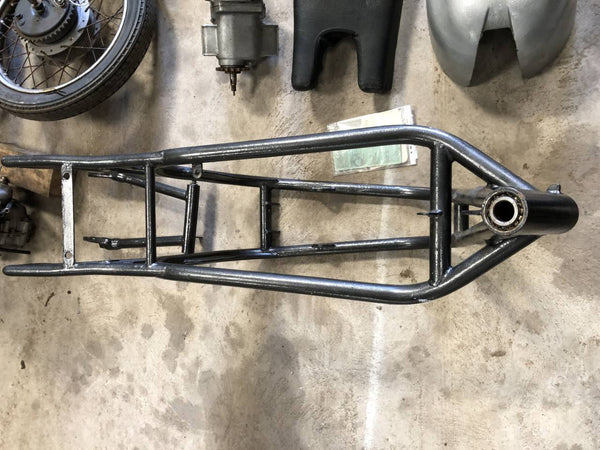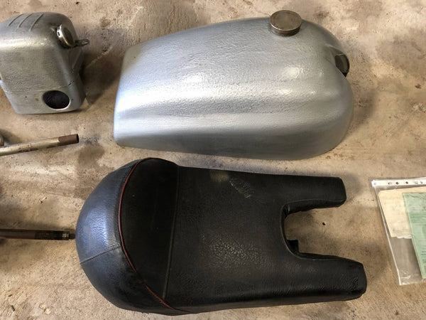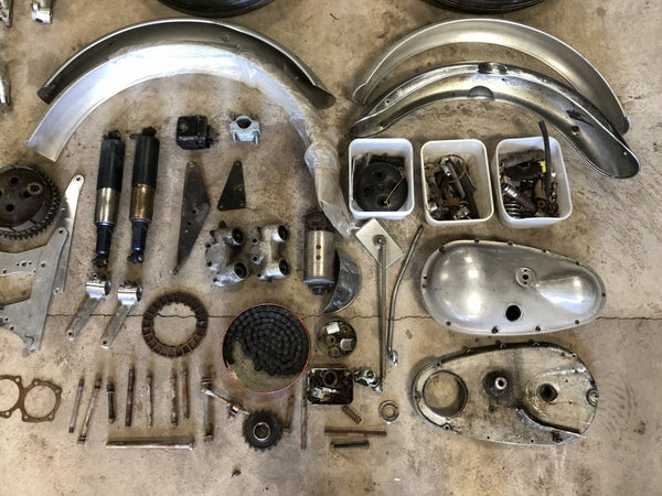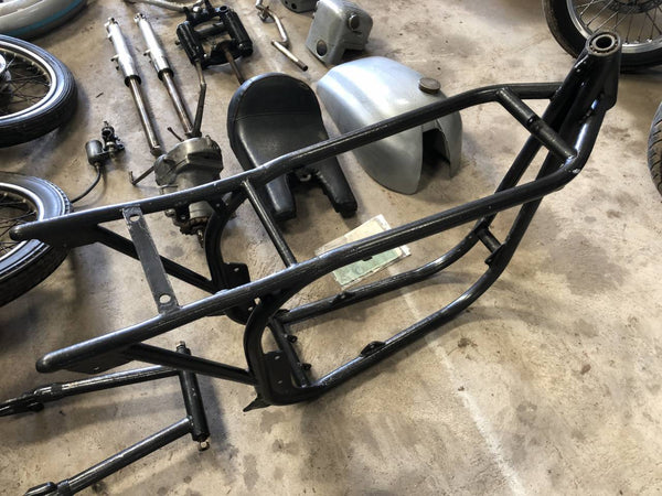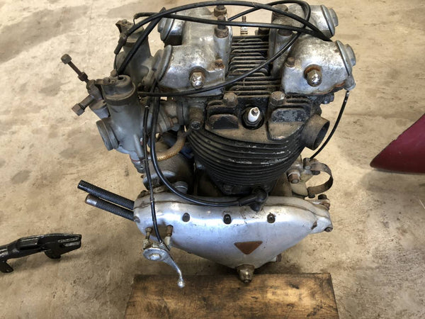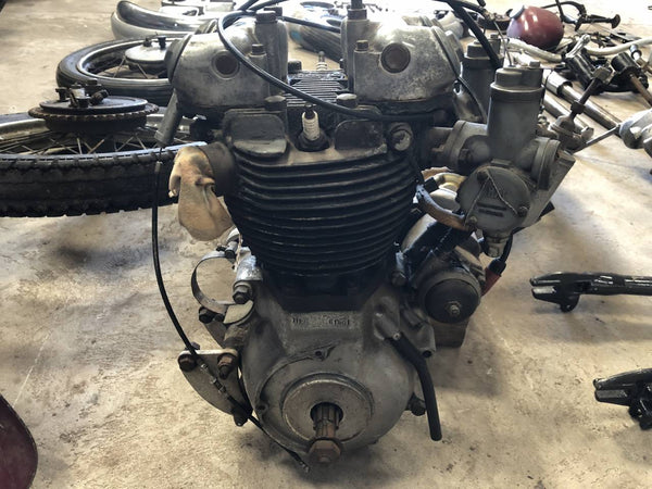 Triton Project , Consisting Of A Painted Norton Wide line Frame , Which Appears To Be Very Good And Straight , With A Clear Frame Number And Old Green Logbook ( so you may be able to reallocate the old reg number ) 1950's , 650cc T110 Iron Head Engine , With Very Unusual Twin Carb Head + Carbs , Magneto , Cases , Etc , This Appears To Be In Good Usable Condition , With All The Remaining ; Good Useable Parts , All As Shown In The Photos.