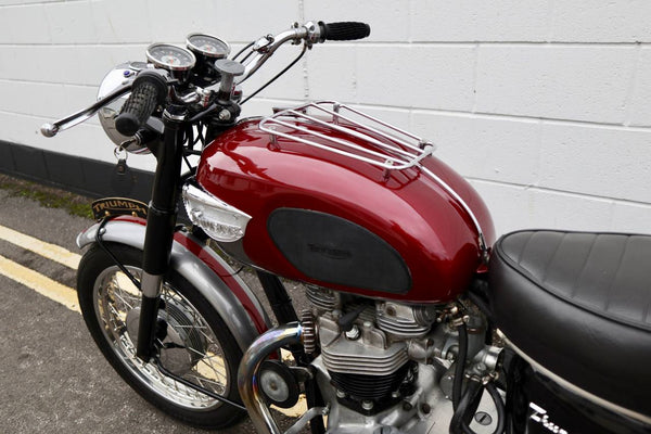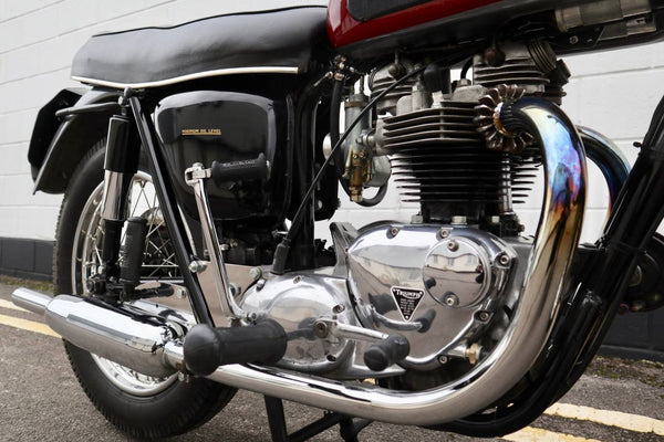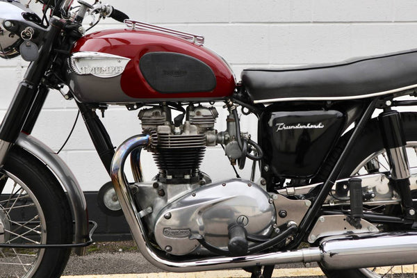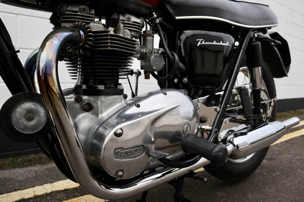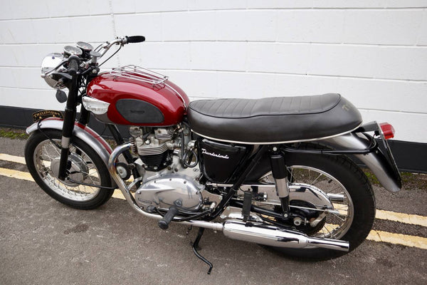 1965 Triumph 6T Thunderbird 650cc. In great condition looking to have been restored a few years ago with stainless steel rims and spokes, New clocks Fitted. The Thunderbird was originally supplied to the Metropolitan Police so says the previous owner. Starts easily for a 650cc as lower compression than the 1960 Bonnie's. Non matching numbers. This is a very well priced unit-construction 650 Triumph thats easy to live with in very nice order. Bargain !