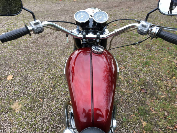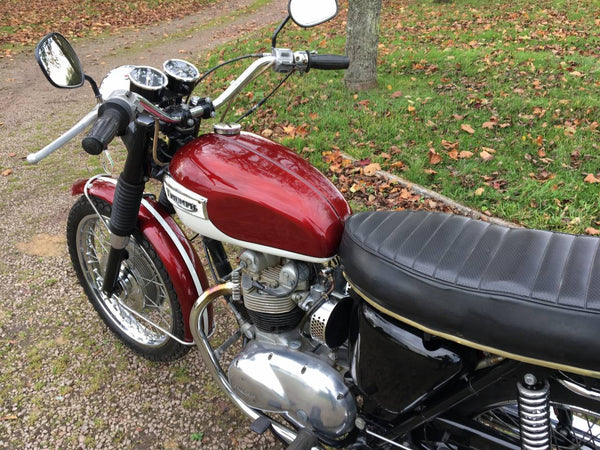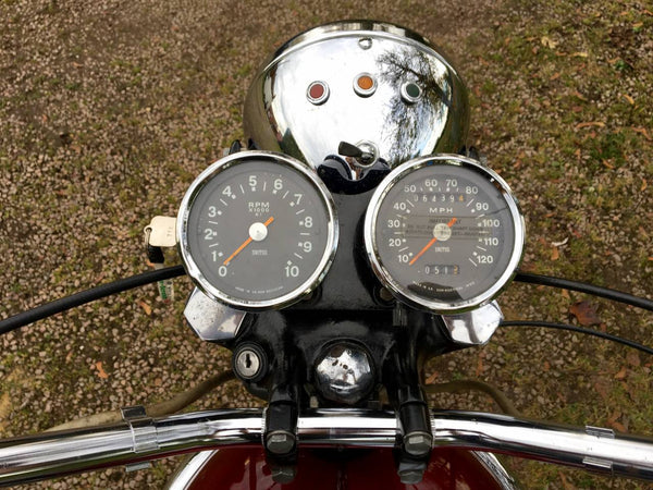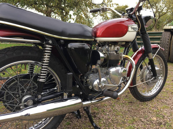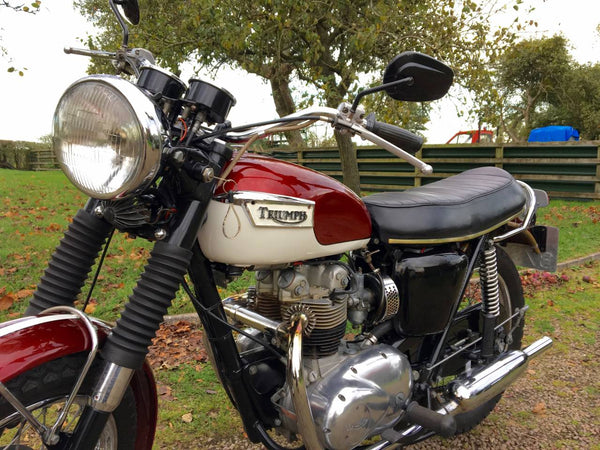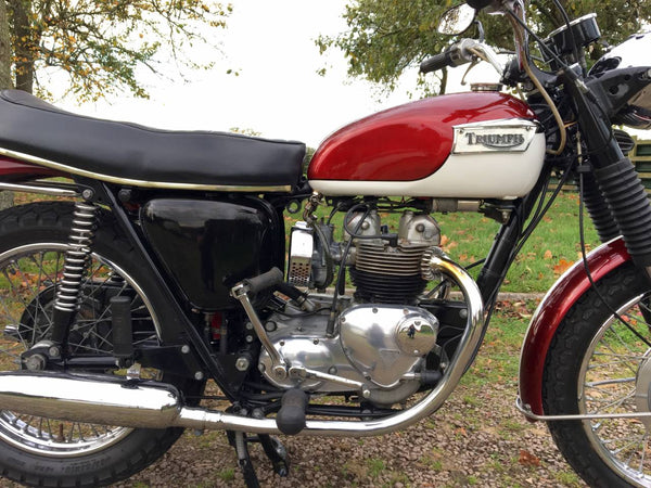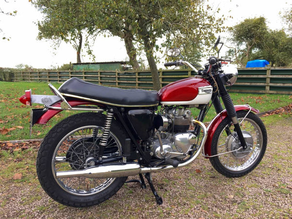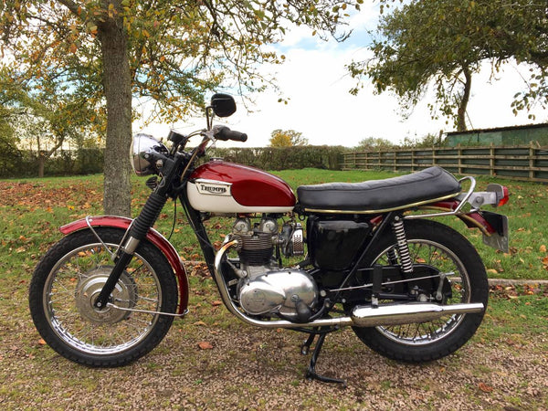 Triumph Daytona 1971 T100R 500cc . This Is An Original Matching Numbers Example, With Dunlop Rims And As A Late Model , Has The Twin Clocks And Very Effective TLS Front Brake . Starts First Kick , With A Sweet Running Engine And Rides Very Well Too . Known As The Baby Bonniville , As Lighter In Weight , 337lbs And 43hp And 105 mph ! Easier To Handle Than The Bonniville Too . The Same Year 650 Bonniville Weighs 400 lbs And Has 3 HP More ! Looks Lovely , In Its Burgundy And White Colour Scheme . Good Fun And A Great Investment.