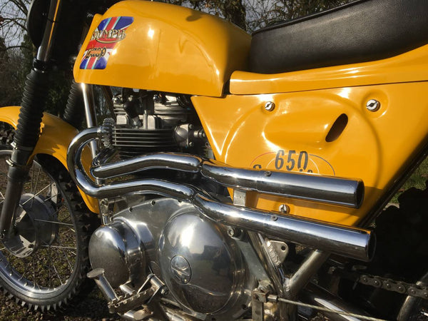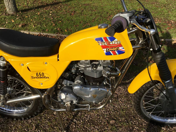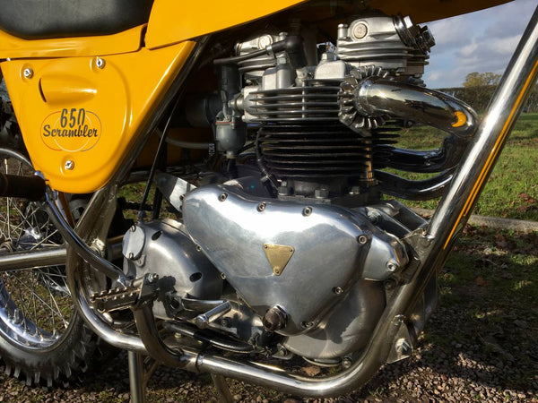 Triumph " Wasp " Pre-Unit 650 . Rhind Tutt RT3 Scrambler ... Better Frame Than A Rickman ( see the link ) In Fantastic Condition , With Nickel Plated Oil Carrying Frame . Very Well Built And Looks Like A New Machine . Starts Easily ; First Kick , With A Rebuilt Engine ; T110 Big Bearing Bottom End ; Unit Top End . Lightweight And Very , Easy To Handle . Very Quick , With A Crisp , Powerful , Responsive Engine . Can Easily Be Road Registered , Or Use Off Road , As Is . Sounds Superb , ( See Video ) With A Quick Action Throttle And A Mechanically Quiet , Smooth Running Engine . Great Fun And A Good Investment .