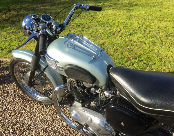 Triumph 1955 Special with the Smooth Tractable 1952 Thunderbird Pre Unit Engine . Looks Very Attractive in light eggshell blue. Starts very well, sounds fantastic and rides great. A good alternative to a Thunderbird at an affordable price.