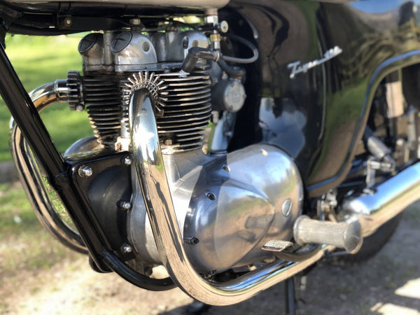 Triumph T100 Bath Tub 1960 500cc. With Matchings Number And In Great Condition. Comes With Its Original Steel Bath Tubs And Guards. Runs Extremely Well With A Easy To Start, Smooth And Mechanically Quiet Engine. Also Benefits From 12V Electronic Ignition With The Switch Hidden Under The Seat. All In All A Very Original Bath tub Triumph Thats Ready To Ride And Enjoy.