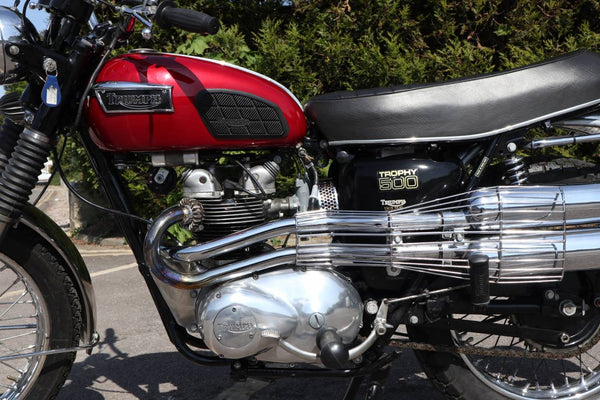 1970 Triumph T100C 500cc. Comes with matching engine and frame numbers and a dating certificate. This is an older restoration, still in very good condition although the tank could now do with a repaint as its lifted in some areas. Comes with a big file of history. Runs and rides great as can be seen in the video. A great investment !