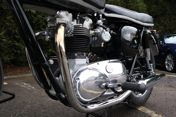 Has the rare rubber mounted Bonnie oil tank, new shocks, theres an SRM stainless OPRV ordered, new coil, new leads, new fuel lines, new filters, new oil lines, new battery, new regulator rectifier, new cables, overhauled clutch, New tank badges, rack and trims too, 1968 TLS brajeplate fitted also...