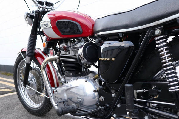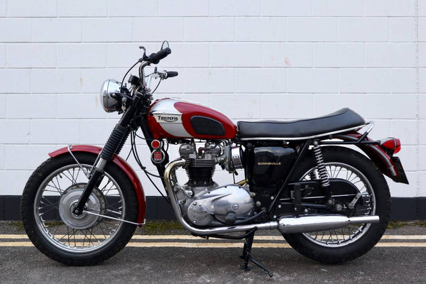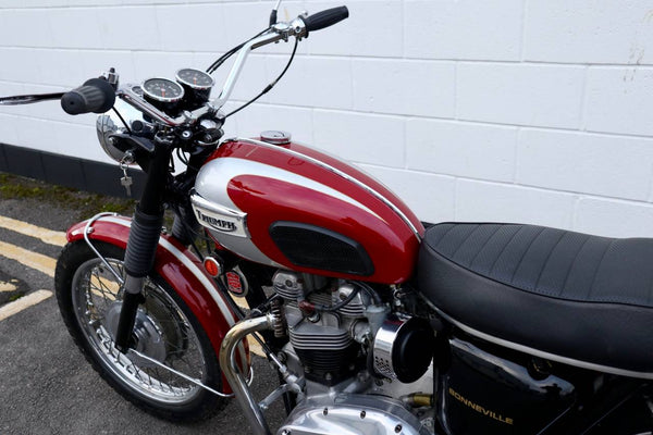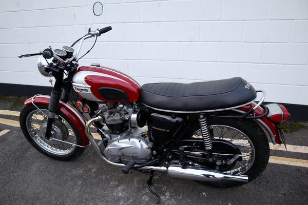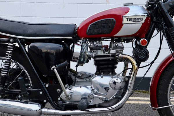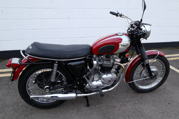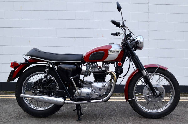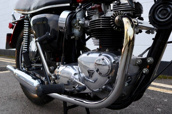 1970 Triumph T120R Bonneville 650cc. With exceptionally low mileage (5935 odd) and original spec including matching numbers, original Dunlop rims and dished pancake air filters. Recently fitted with Boyer Electronic ignition and new sealed battery. The 1970 is considered the best unit construction year with the best crankcase breather system and TLS front brake. This example is in superb condition, starts easily and runs and rides without fault. Great fun and an appreciating classic .