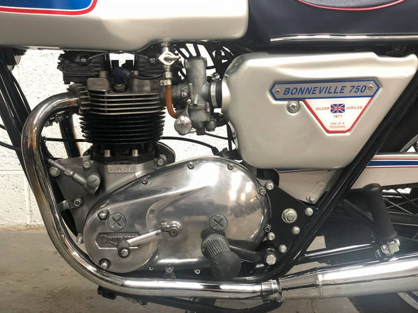 1977 Triumph T140J Jubilee Bonneville 750cc. With Correct Matching Frame And Engine Numbers. Starts Easily With A Smooth, Powerful Motor. In Excellent Condition Having Been Powder Coated Recently Which Included The Frame. All The Nut And Bolts Have Been Replaced Replaced With New.