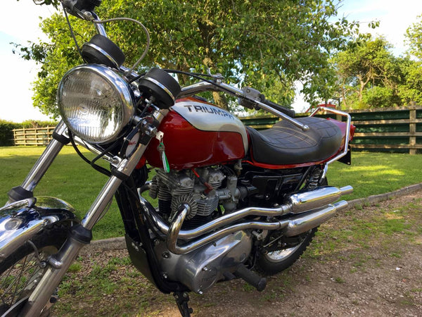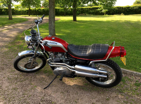Triumph Bonny T140 V 750 cc , 1975 , 5 Speed Street Scrambler / Flat Tracker Style . A Fantastic Looking Special , With Superb Colour Scheme , Giving A Modern Take , On This Matching Numbers Machine . Lots Of Money Has Been Lavished On This Bonny , To Get It Into This Immaculate Condition And Great Specification . Starts Easily , With A Good Strong Motor . Has A Long Mot And Is Tax Exempt . You Can Be Sure You Won't See Another One Like This ! A Quick Machine And A Great Investment