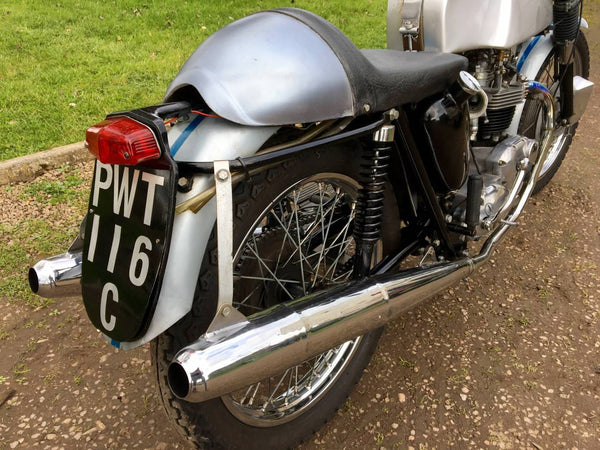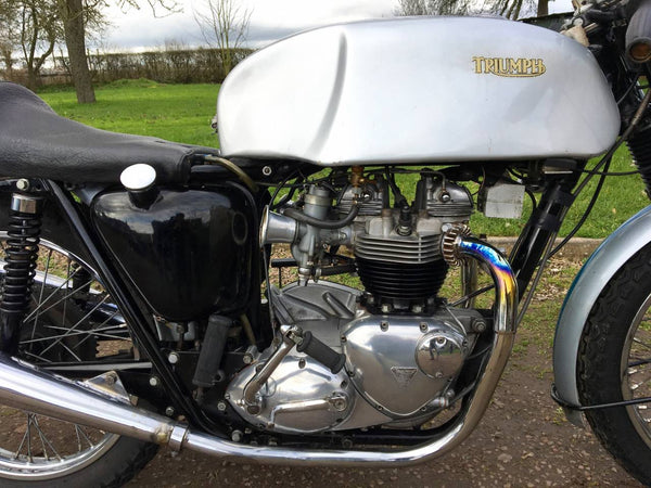 Triumph Full Thruxton Spec Bonneville 1965 650cc . Totally Rebuilt By An Elderly Thruxton Team Rider , To The Exact Same Spec And Only Passed Onto Us As He's Just Hung Up His Leathers , At 75 Years Young ! Been Clocked At 130mph , On The Circuits That Have Long Straights ! Currently Fitted With 46 Tooth Rear Sprocket , To Rev Out , On Brands Hatch , Donnington And Mallory . Comes With A 44 Tooth For Caldwell. Was Recently Road Registered And Has Matching Numbers And Mot . Recently Treated To New Valves And Guides , With Norman Hyde Springs . The Clutch Is A 7 Plate L.P. Williams . Double Damped Forks , Which Have Just Been Stripped , Cleaned And Refilled . Fitted With An Excellent , Skimmed And Shimmed Ventilated And Scooped , Front Brake , With Spare New Linings . 9 to 1 Compression . Twin Monoblock Carbs , With Central Float Reservoir . Oil Tank With Side On Filler . TT 100 Tyres . Genuine Thruxton Tri Reversed Mega Silencers . Alley Tank . Genuine Seat And Tail Piece , With Central Cut Out , For Fast Battery Access . Relatively New Chrome Rims And Spokes , Girling Shocks , Easy To Read Twin Clocks And Loose Side Stand Not Yet Fitted . Running On Semi Synthetic 10/40 Oil .