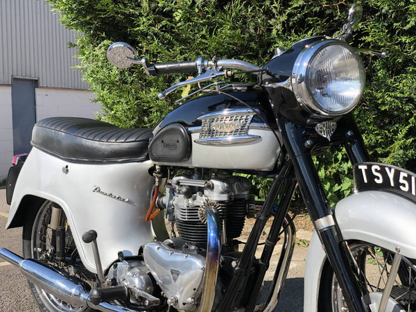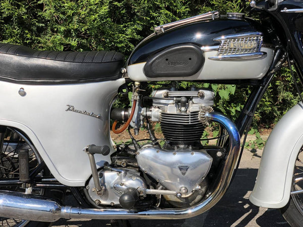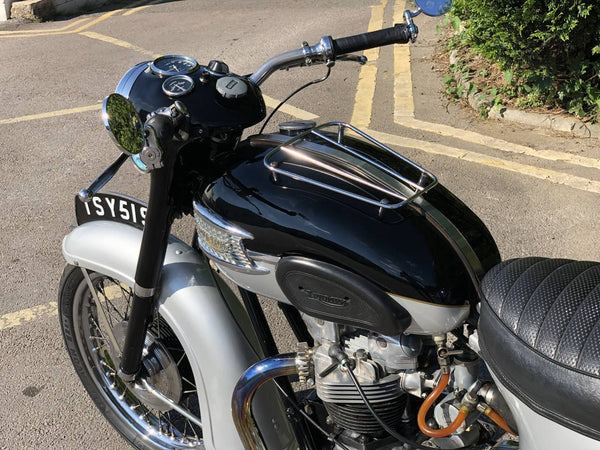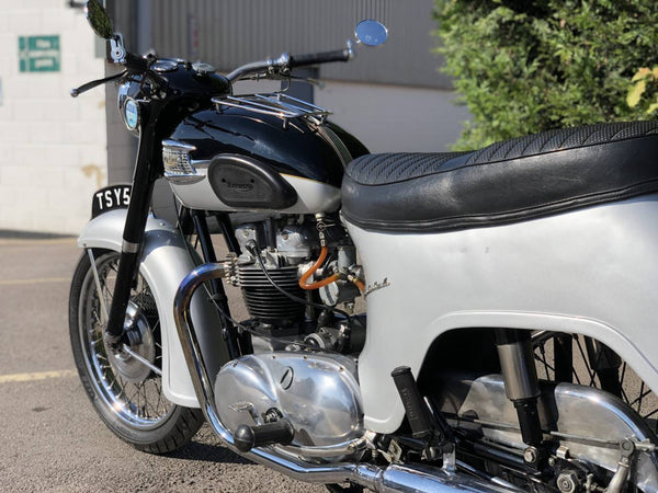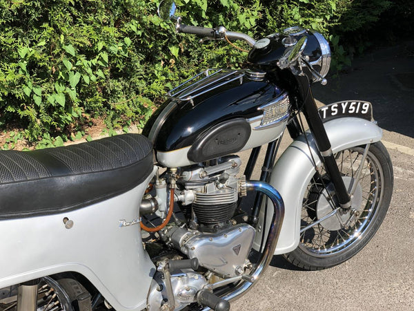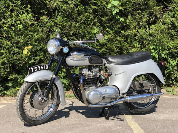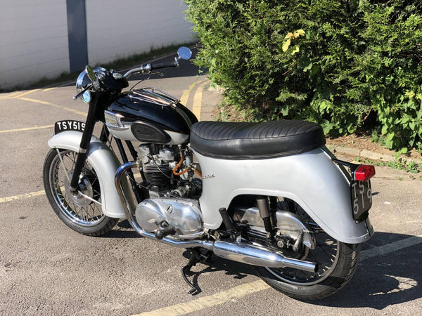 Triumph 6T Thunderbird 650cc 1961. This T Bird in silver and Black has matching numbers and is all metal and in very presentable condition. Starts very easily , ticks over and rides very smoothly with plenty of torque. It came from an enthusiast and has been maintained in fine fettle.