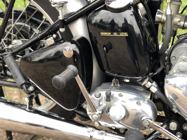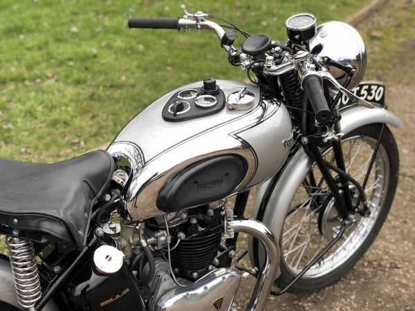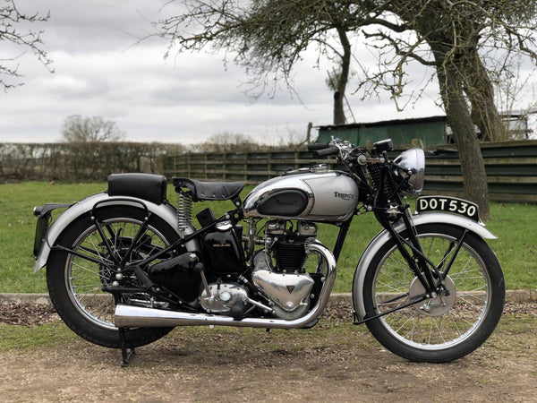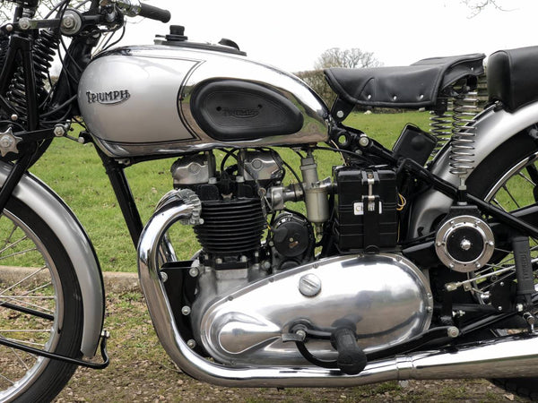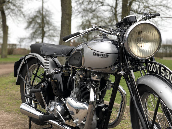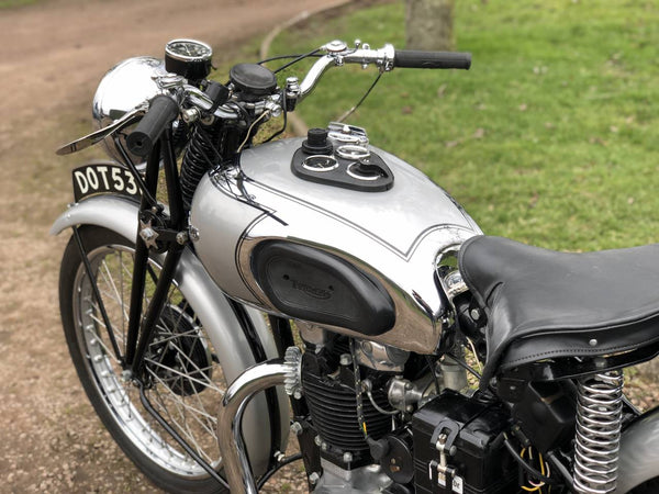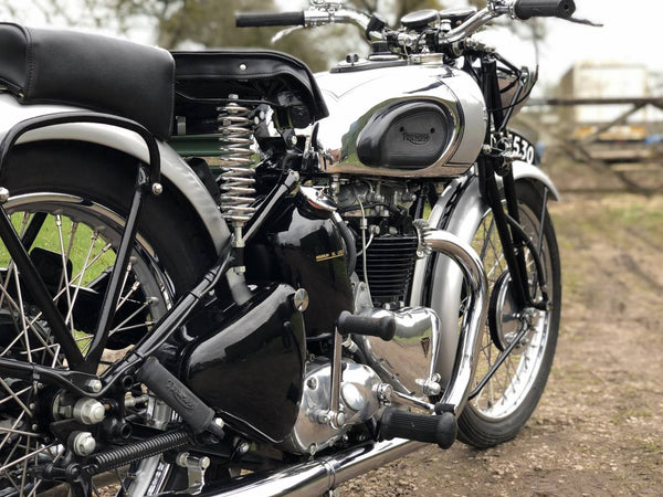Triumph Tiger 100 1939 500cc. 99% Original / Correct Frame And Engine Numbers / Correct Smooth Shifting Gearbox / Perfect ; Light Clutch / Old Card Buff Logbook / Current V5C / Original, Transferrable Reg Number (Please Don't Dare Sell It , As This Has Been With It From Birth And Would Ruin Its Originality) Fully And Very Well Restored , Over 10 Years Ago And Still In Fabulous Condition With A Very Healthy And Quiet , Sweet Running Engine / Runs And Rides So Well, For A Pre-War Rigid ; Girder ! / Great Oil Pressure , On The Oil Pressure Gauge / With Everything Else Working Perfectly / Lovely And Correct Paintwork / Chrome Is Great Too / Correctly Coach-Lined And Painted Rims / Paintwork To Frame And Forks Is Perfect / Tank Is Correct With Perfect With Lovely , Thick Gauge Chrome Plating / Paintwork On Tank Is Correct And Perfect / The Rare Gallon Capacity Oil Tank Is Correct And Perfect / The Instruments All Work And Are Correct ( Bar The Incorrect Type Of Oil Pressure Gauge ; We Can Find You The Correct One ! )The Headlamp And Forks Are Correct And Perfect / The Headlamp Glass Is The Correct " Fluted " Original Type ; So Often Replaced By Ugly " Stippled " Bathroom Glass Ones.