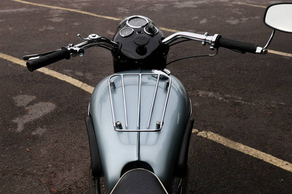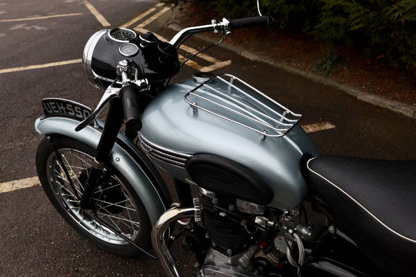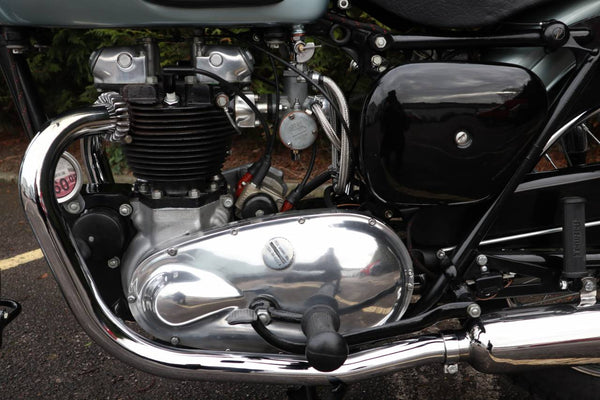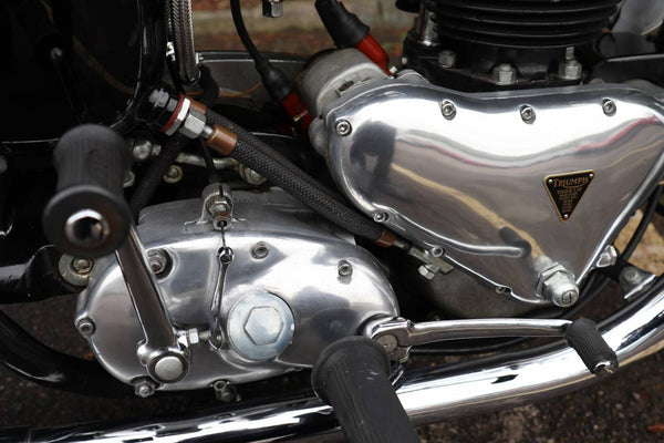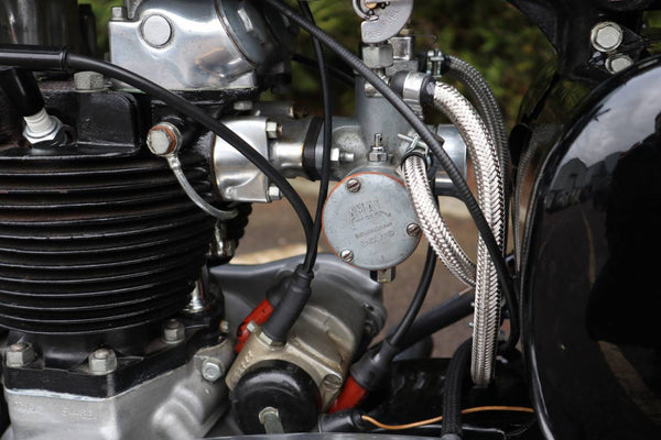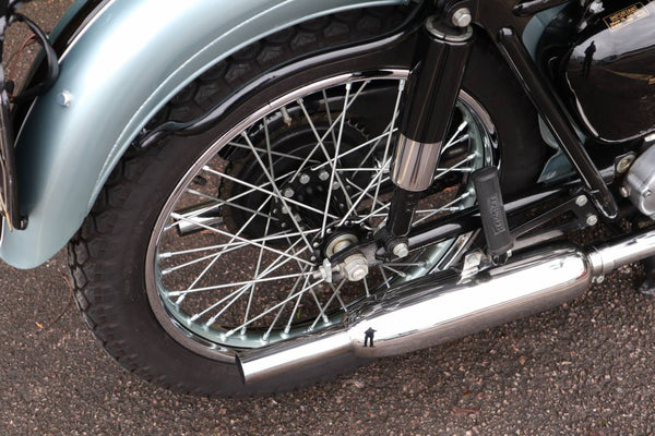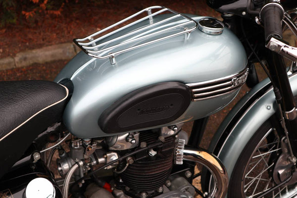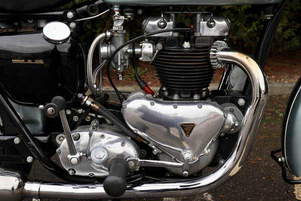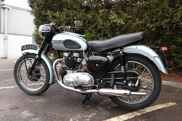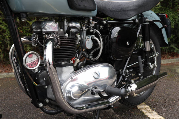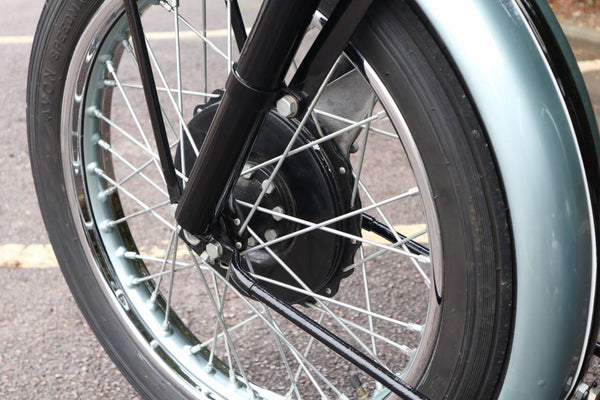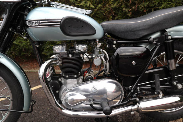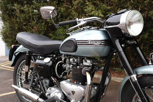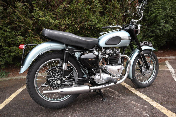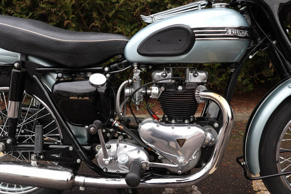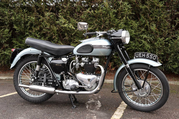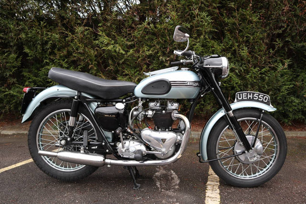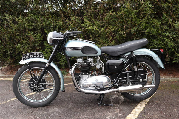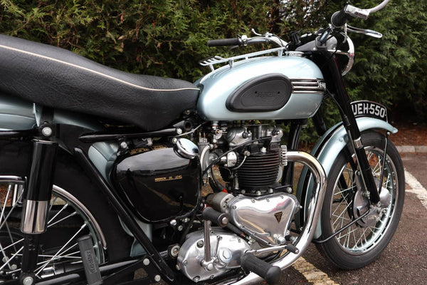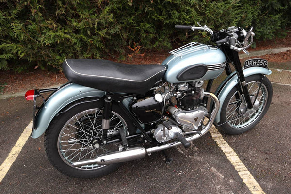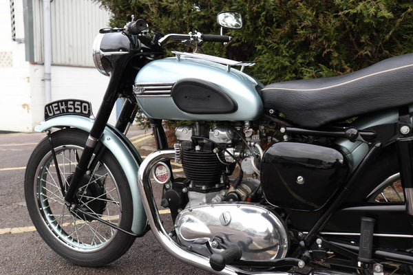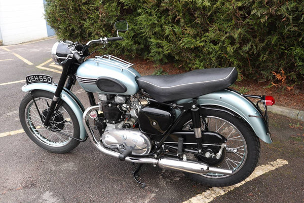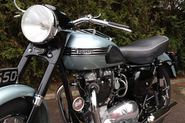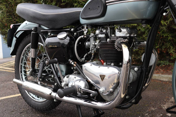 Triumph T110 1954 650cc. In superb restored condition throughout with matching engine and frame numbers. Starts easily, runs and rides very well too. This is the more desirable iron head model with the strip badges and vented pie-crust vented front brake. This is a beautiful example at a Bargain price!