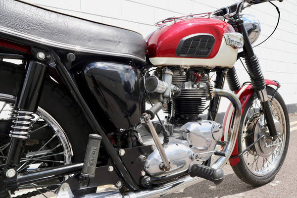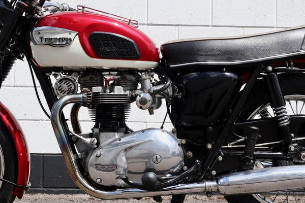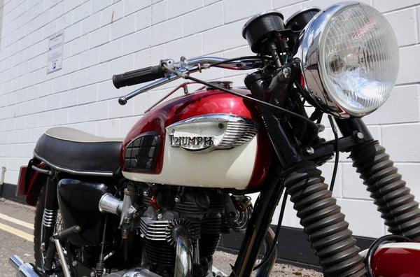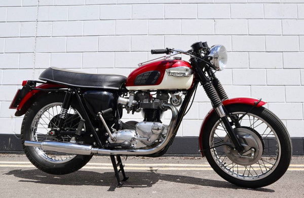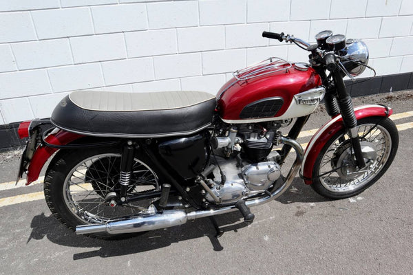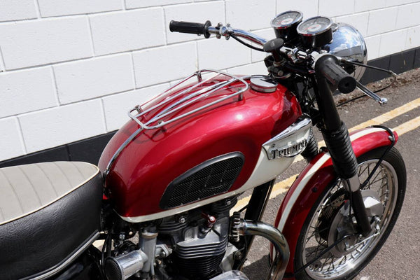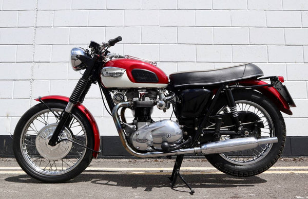 1967 Triumph T120 Bonneville 650. This is an original UK example from new first registered on the 24.01.1967 with matching engine and frame numbers. Looks to be all original with Dunlop rims. Comes with its first original green card log book where one of the previous keepers owned the bike for 35 years.