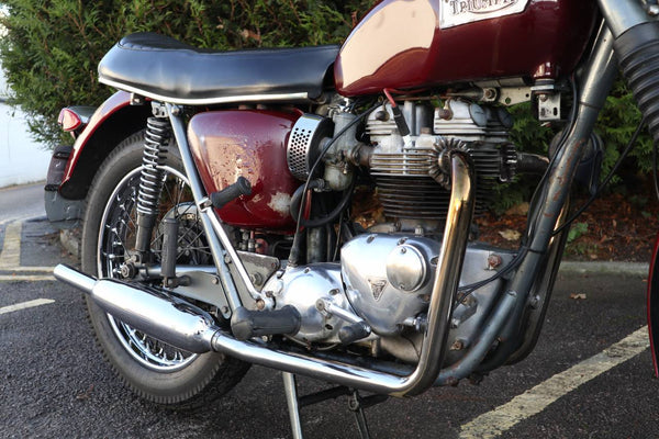 1969 Triumph T120 Bonneville 650cc. With matching engine and frame numbers. This bike is in very solid usable condition. Lots of room to improve and add value to the cosmetic condition as seen in the photos. All the parts look to be original and correct apart from the down pipes. Runs very well and sounds fantastic as can be heard in the video. The 1969 Bonneville is regarded as one of the best years being a late pre oil in frame model. A great investment and this one is a Bargain Price !