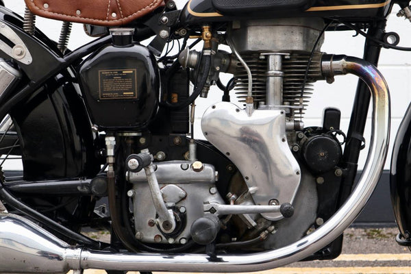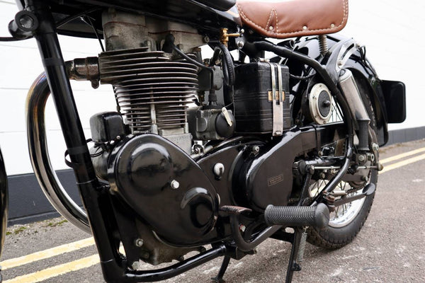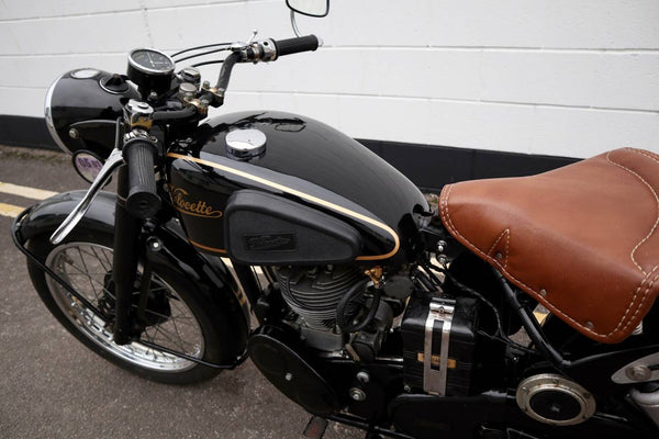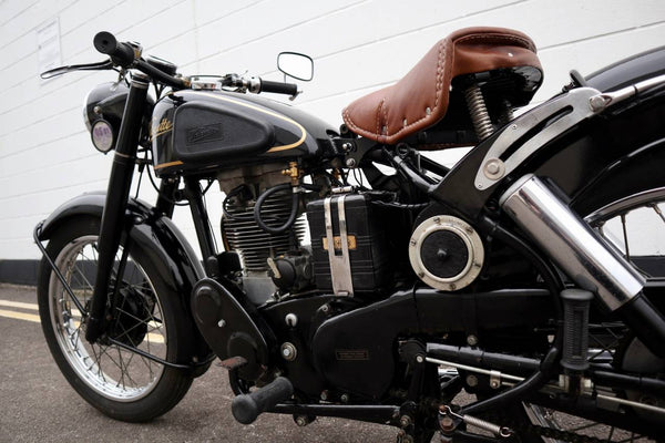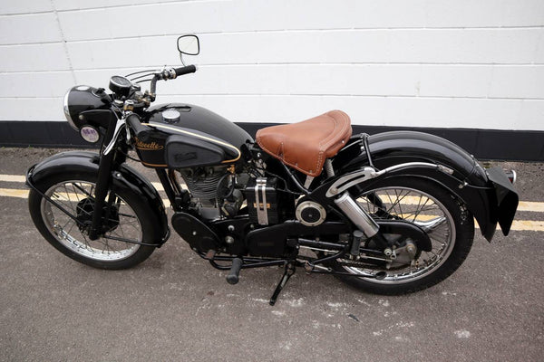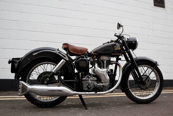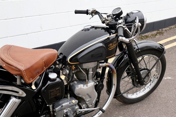 1954 Velocette MAC 350cc. In very nice condition fitted with a sprung saddle seat ( Original seat comes with the bike ). Starts easily and runs and rides very well. Comes with a good file of history. Ready to ride and enjoy!