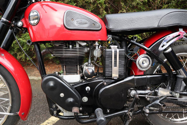 1961 Velocette Viper 350cc. In the lovely red colour scheme and in very good original, usable condition. With re-sleeved barrel and new piston around 500 miles ago. Starts very easily runs and rides very well and looked after well too by its last owner. A very good Viper and a good investment!