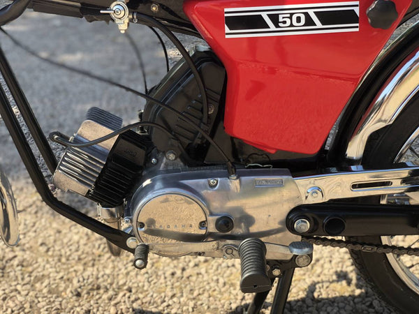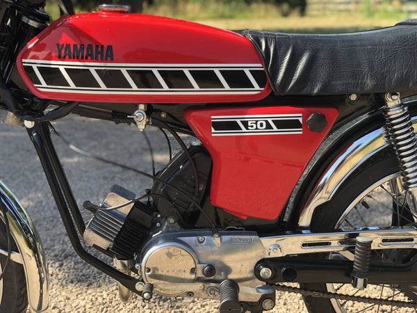 Yamaha FS1 49cc Registered 1988 , With Matching Numbers. This Example Has Been Almost Fully Restored By The Last 2 Owners ; The First Did An Engine Rebuild & Restored The Paintwork ; The Last Fitted New Chrome Mudguards , New Rear Shocks , Etc , All As Shown On The Receipts . The Rims Are Presentable , But Could Do With Being Rechromed , Or Renewed. Comes With Lots Of Old Mots Confirming Its Present 8000 Odd Low Miles. It Starts , Runs & Rides Well , With A Big Grin Factor ! New No Advisories MOT. Very Light & A Good Investment .