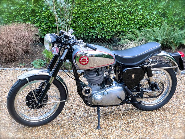 DB34 1955 BSA Goldstar. Despatched to California in early 1955 and a replacement engine followed a few months later. Repatriated in early 2000’s and treated to complete rebuild including a Phil Pearson Crank and more from the maestro. Fitted in 2022 with a Bob Newby Clutch and a Mikuni, although a virtually new GP Carb is available by negotiation. All cables renewed last year as well as the Speedo being rebuilt by a specialist. All parts to return to Clubman spec are included. Lots of paperwork and history from the Goldstar Club. £16,750.