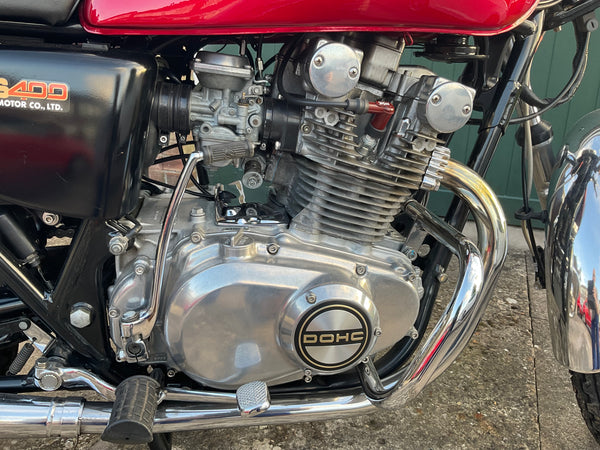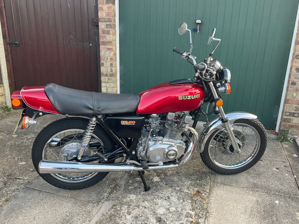 SUZUKI GS400B, 1977, 13242 GENUINE MILAGE, RESTORED, MOT & TAX EXEMPT,, POWDER COATED FRAME, LOTS OF NEW CHROME, ELECTRONIC IGNITION, NEW TYRES, HAGON SHOCKS & BATTERY, STAINLESS FASTENERS, DREAM MACHINES PAINTWORK, GBP 5750 ONO, WARWICKSHIRE. 07984759615.