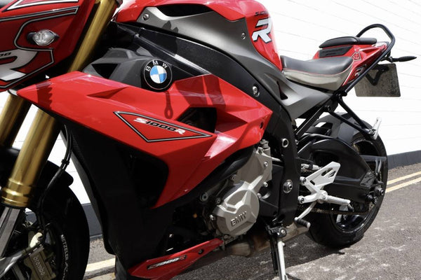 2014 BMW S1000R Sport Pack. 8041 Meilen auf der Uhr, 2 ehemalige Torhüter, frischer TOT im Verkauf und Ersatzschlüssel. Mit voller Servicegeschichte und in ausgezeichnetem Zustand. Der BMW hat kürzlich eine neue Kette und ein Kraftfahrzeuge angepasst. Neuer Metz RR Tire, Rrizola-Spiegel, up bewertete Sitz, Garmin Sat-Nav, neue Grafiken, Akrapovic-Auspuff und Kit-Schwanzaufladung. Ein gutes Beispiel, das bereit zu fahren!