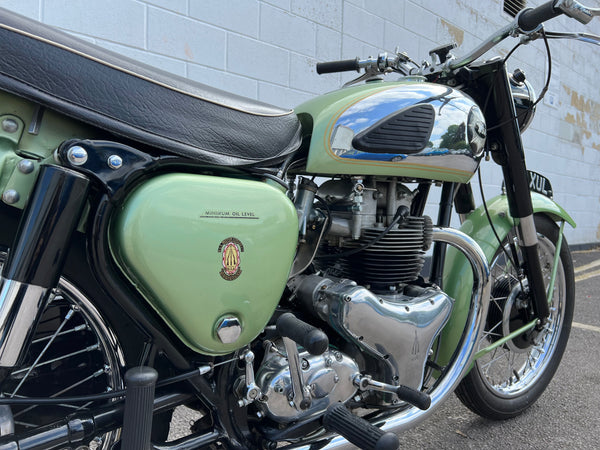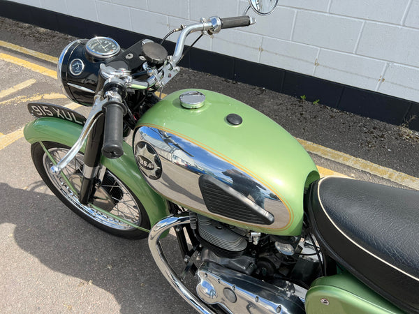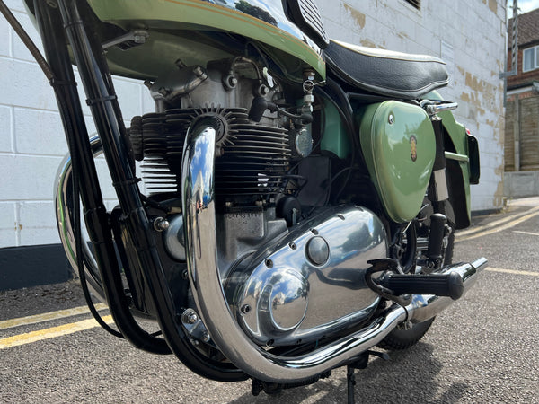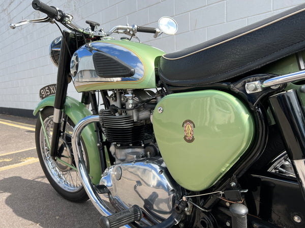 BSA A7 Shooting Star 500cc 1958. In excellent condition looking to have recently been restored to a nice standard. Showing only 2814 miles on the clock. Starts up well and rides well too. Comes with a current log book. A lovely British classic, ready to ride.