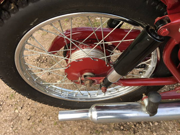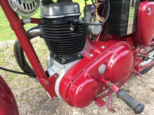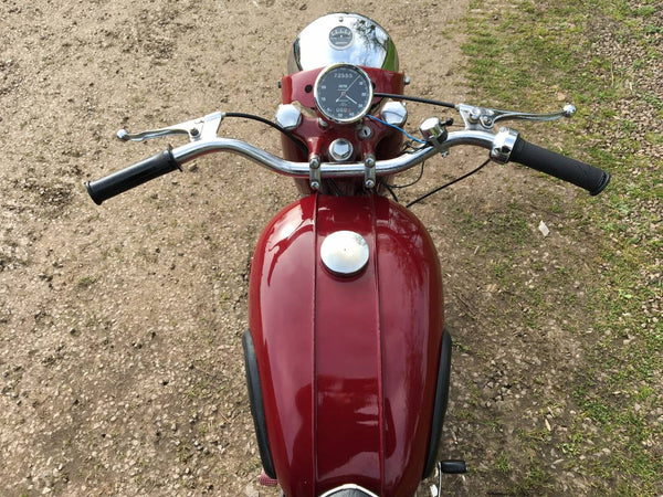 BSA C12 250cc 1958, restauriert von einem Enthusiasten und in der schönen sehr originellen Spezifikation. Kommt mit dem BSA Owners Club -Zertifikat und bestätigt das Versanddatum und die Originalnummern. Es ist mit einer Chrom -Scheinwerferhülle ausgestattet, aber eine bemalten Schale in der richtigen Farbe und eine Dose kastanienbrauner Farbe für Ausbesserungen. Es ist mit neuen Chromfelgen und neuen Speichen, allen neuen Lackierungen usw. ausgestattet. Dies ist ein süßes kleines Leichtgewicht, das leicht beginnt und gut mit niedriger Sitzhöhe läuft. Ideal, wenn Sie von einer schwereren Maschine aus dem Handel gehandelt werden. Es ist steuerlich und motfrei und wird mit einer klassischen Versicherung billig zu versichern. C12s kommen selten auf den Markt, insbesondere in dieser hervorragenden Reihenfolge, und wird sich daher als gute Investition erweisen