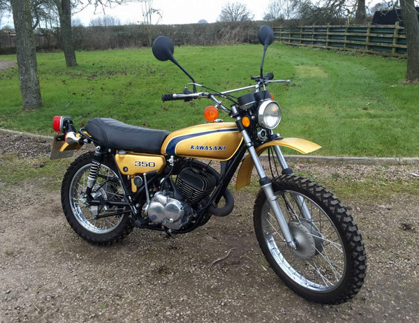 Kawasaki F9 1974 350cc, 2 Strich vor einigen Jahren restauriert. Dies ist ein seltenes Modell in Großbritannien, da die meisten nach Amerika exportiert wurden. Immer noch in hervorragendem Zustand.