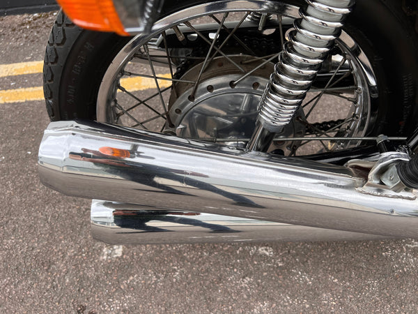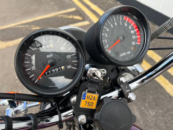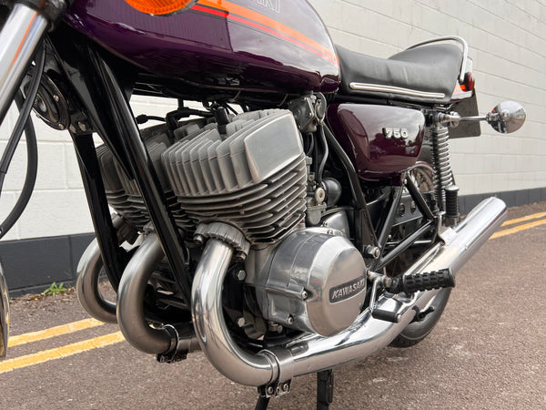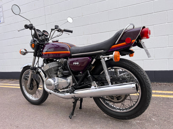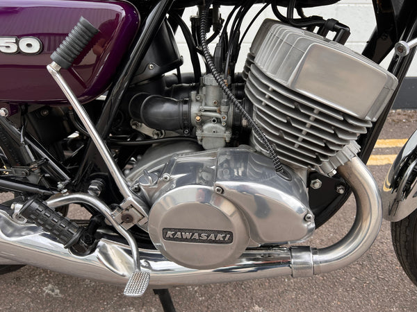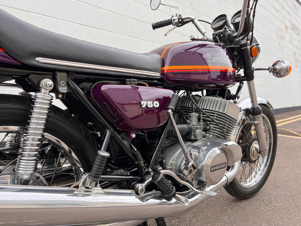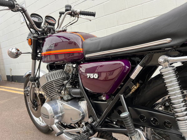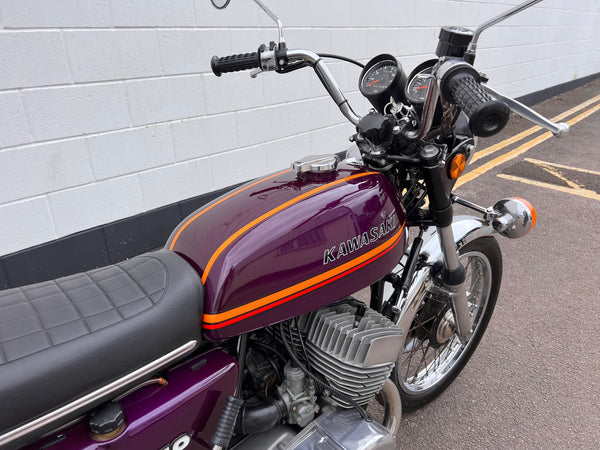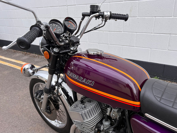 Kawasaki H2 750cc 1973. In very nice condition having just had a fresh paint job. The H2 was rebuilt in 2013 with lots of receipts proving what work was carried out. A great example which looks to have all its correct parts, original engine and exhaust pipes. Only 11391 miles on the clock. Starts up and runs and rides very well. A fantastic example!
