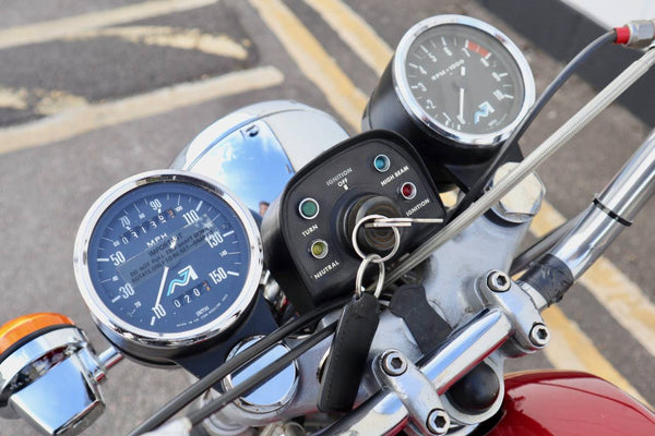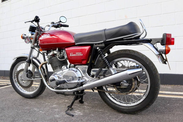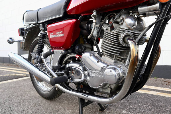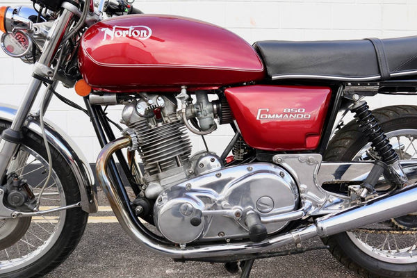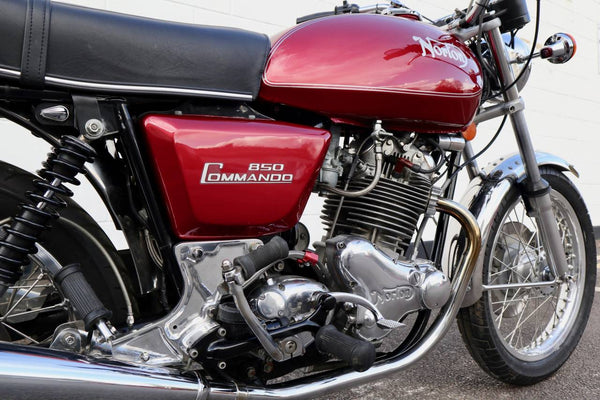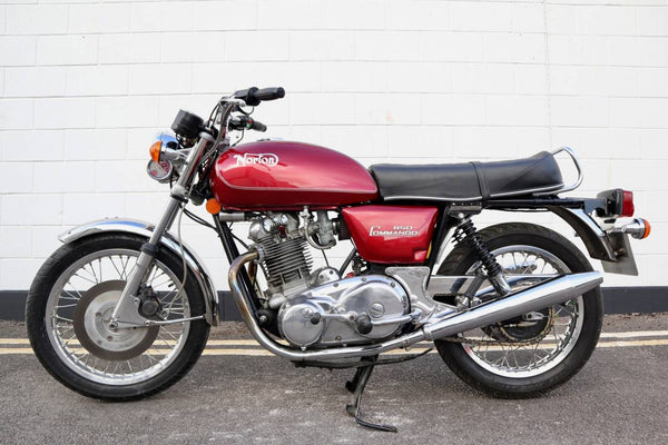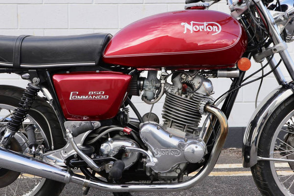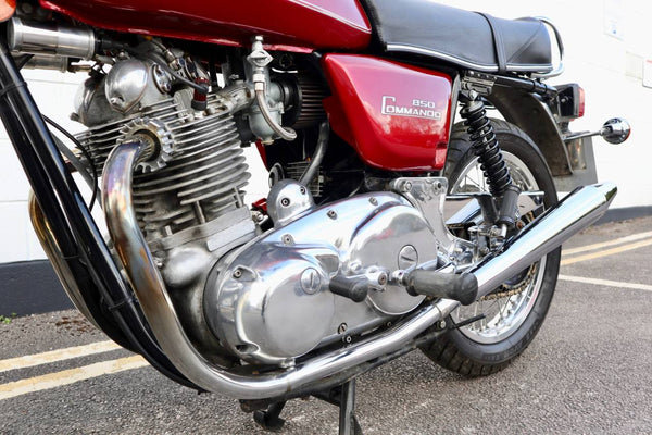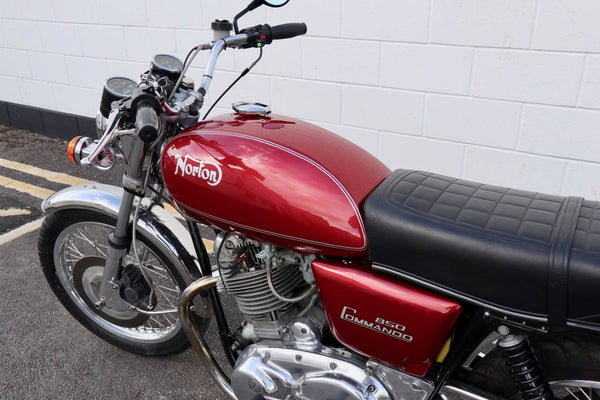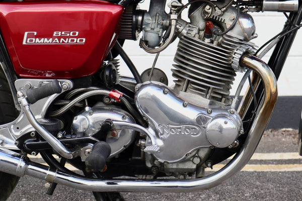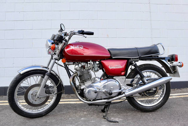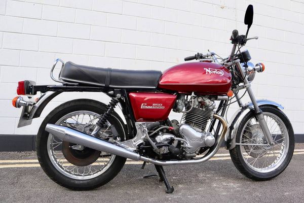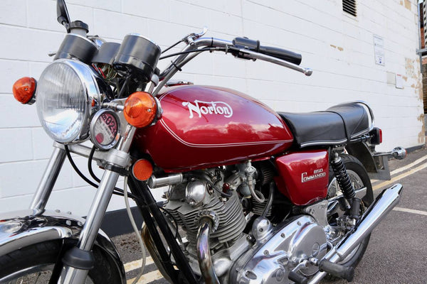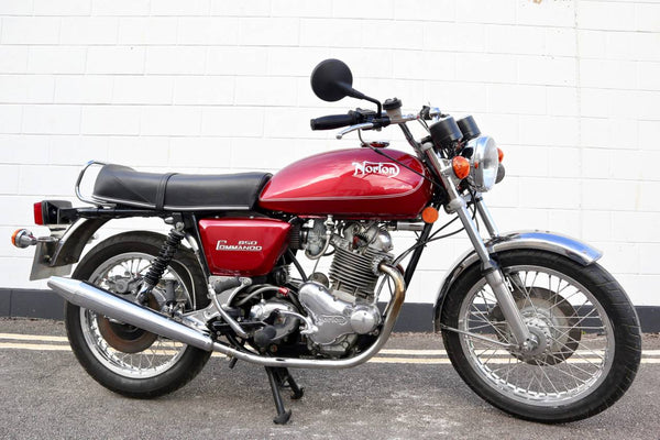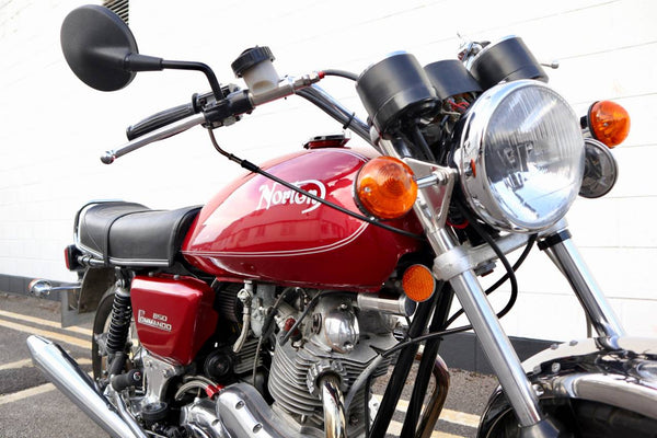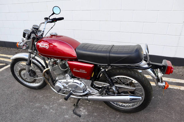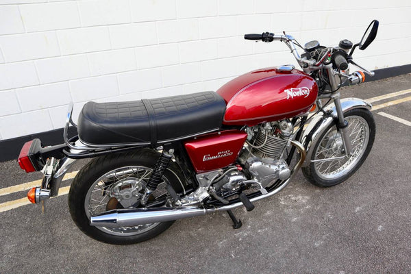 1976 Norton Commando 850 Interstate auf 920 ccm. Mit passenden Motor- und Rahmenzahlen. Dieses Fahrrad wurde auf einen sehr hohen Standard mit detaillierten Geschichte, Einnahmen usw. und Korrespondenz der Vorbesitzer wiederhergestellt. Nur 3200 auf der Uhr zeigten, da dies als Teil der Restaurierung ersetzt wurde. Es ist seit der Restaurierung vor einigen Jahren nur sehr wenige Meilen pro Jahr abgedeckt. Steuer- und MOT -befreit, linkes Ausrüstungswechsel. Kein schwerer zu beginnen als ein 850 ccm, selbst mit dem erhöhten CC.
