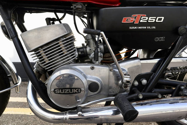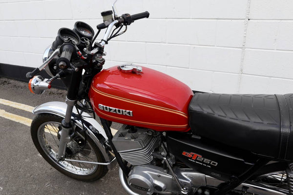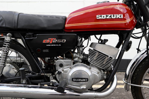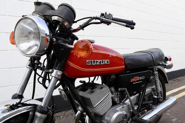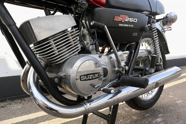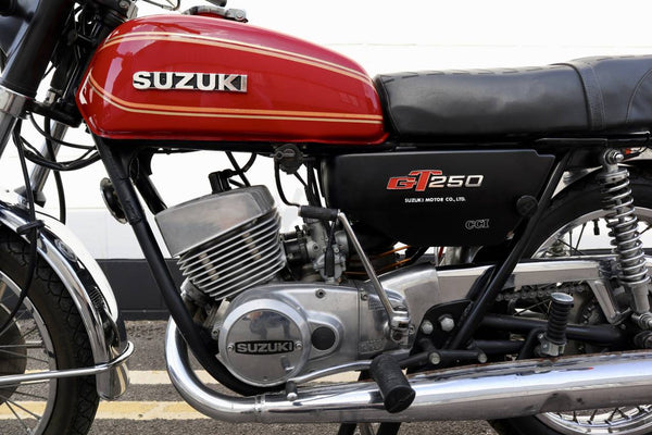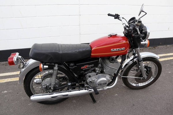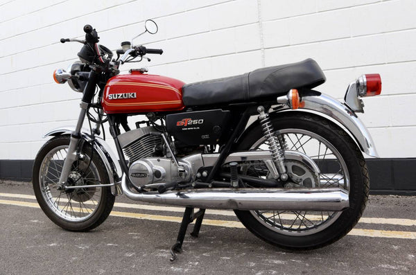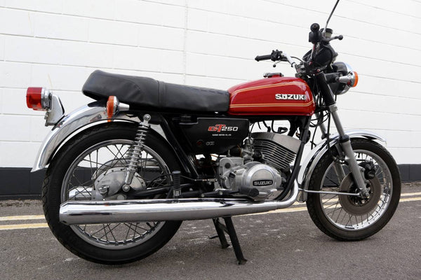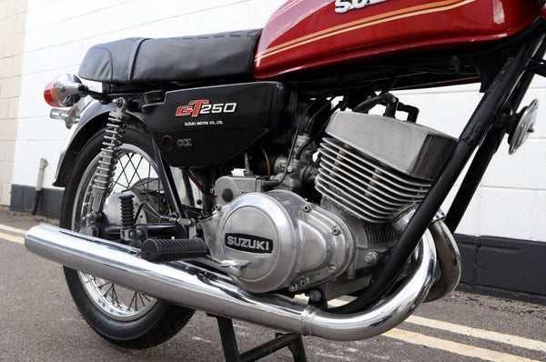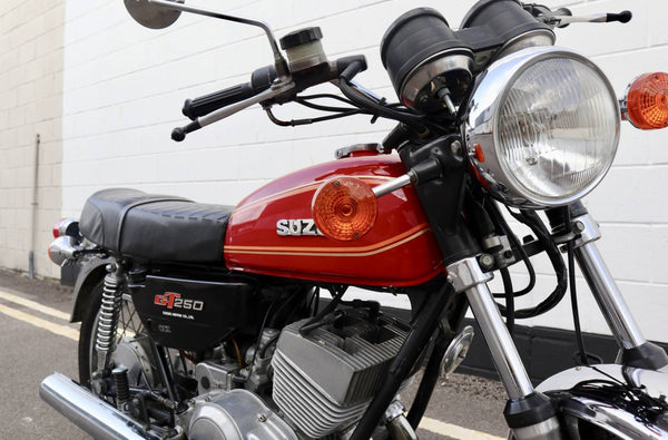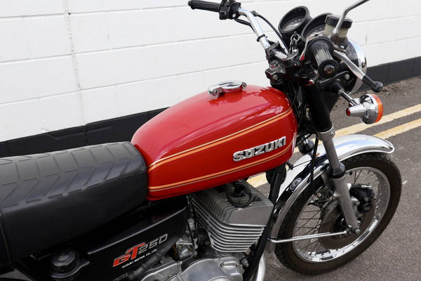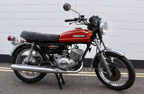 1978 Suzuki GT250. In sehr gutem mechanischen Zustand, der in den letzten 2 Jahren viel Geld dafür ausgegeben hatte. Diese Arbeit umfasst: Neue, Kolben, Ringe, Re -Bohrungen, wieder aufgebauter Kopf, saubere Kohlenhydrate und Tank, neue kleine Enden, wieder aufgebaute Bremsen, neu versiegelter Panzer und vieles mehr. Quittungen summieren sich über £ 1100. Nicht registriert, aber mit Nova -Bestätigung und USA -Logbuch geliefert, wird es nicht viel brauchen, um ein britisches Logbuch zu erhalten. Ein schönes nutzbares Beispiel mit all den teuren Teilen sortiert.