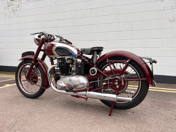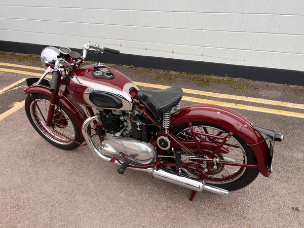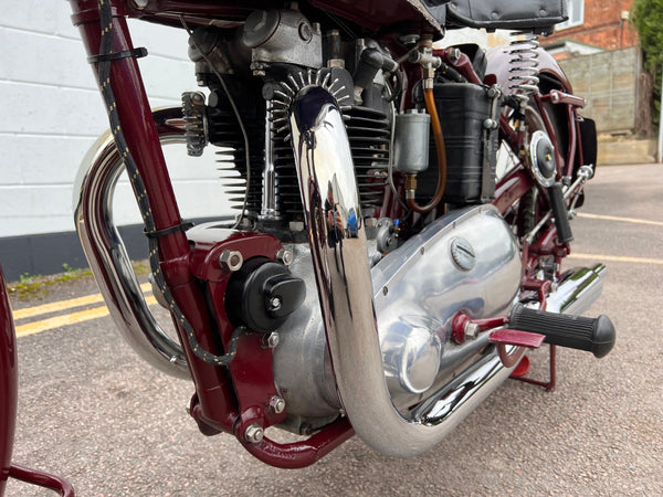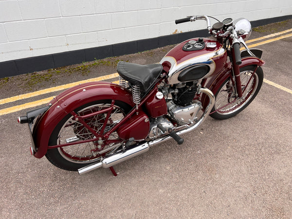 In very nice condition having been fully restored a number of years ago. Only 15 miles covered since the restoration. Come with its original card buff log book which confirms the Frame and engine number to be correct and original. Will still need running in due to the low mileage. A very nice example of a rare 1947 Speed Twin at a bargain price!