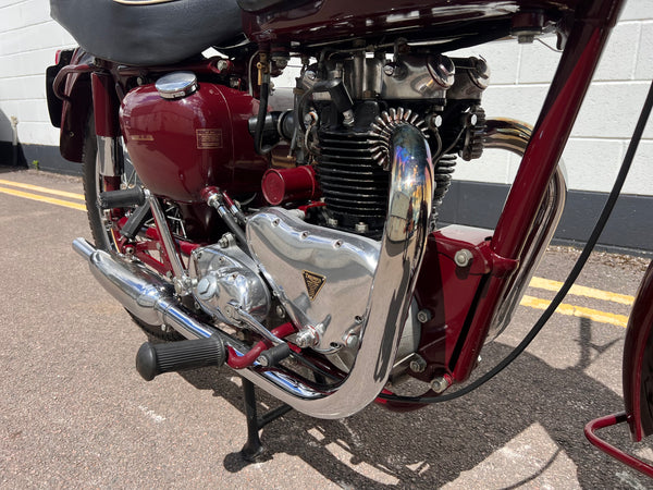 Triumph 5T Speed Twin 500cc 1954. In very nice condition looking to be an older restoration. Comes with matching engine and frame numbers. The swinging arm 5Ts are now very popular with there handsome looks. A very nice example thats ready to enjoy.