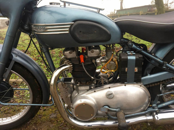 Triumph Thunderbird 1954 6t 650cc, passende Zahlen und sehr originelle Spezifikation mit starrem Rahmen und Lichtmaschinenmotor. Dies ist ein gut verwendetes Beispiel mit verschiedenen Dings und Abrieb, daher eine ideale Fahrermaschine oder ein gutes Beispiel für die Restaurierung. Beginnt leicht, läuft und reitet gut mit großem Öldruck und ist mot und steuerfrei. Jetzt schwer zu finden, so gut aussehend, praktisch und beliebt. Kommt mit einem Ersatz -Su -Carb, der zuvor angepasst wurde. Tolle Investition.