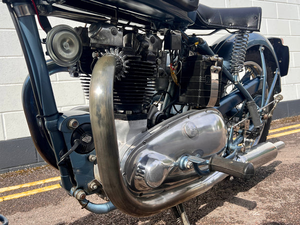 Triumph 6T Thunderbird 650cc 1952. In nice usable condition with matching engine and frame numbers. Petrol tank has just been repainted. Has been fitted with electronic ignition. The engine sounds good and the bike rides well. These are very sort after and getting harder to find so be quick!