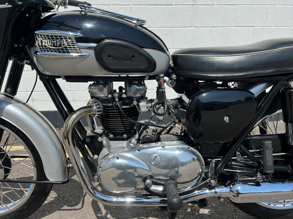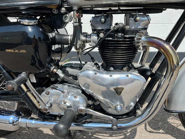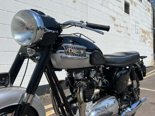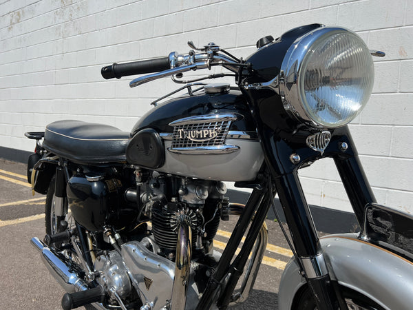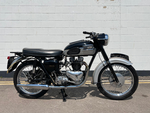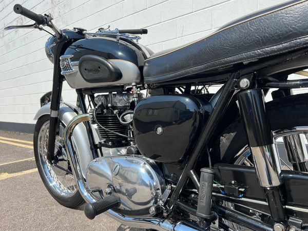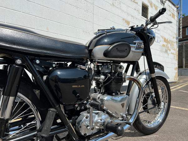 Triumph 6T Thunderbird 650cc 1960. A nice bike looking to have been restored. Recent work includes new stainless steel rims and spokes. Non matching hence great price. Iron Pre-Unti engine with Duplex frame. A great machine.