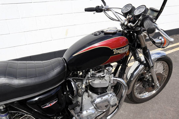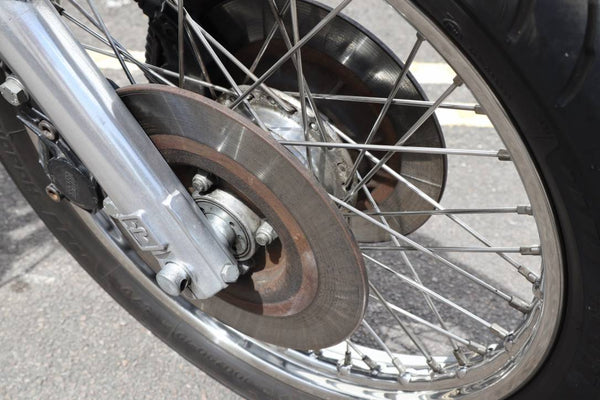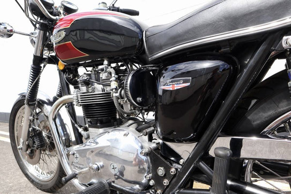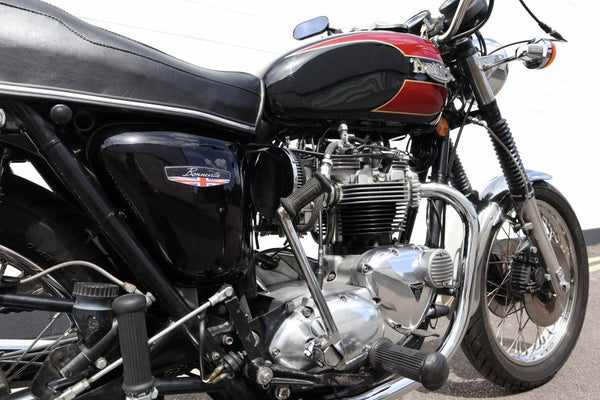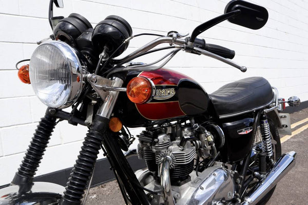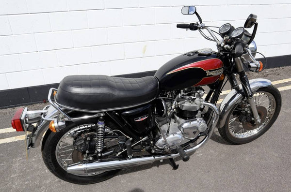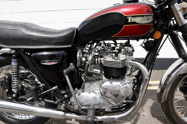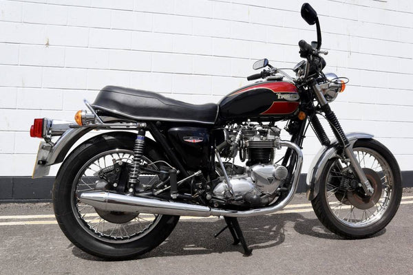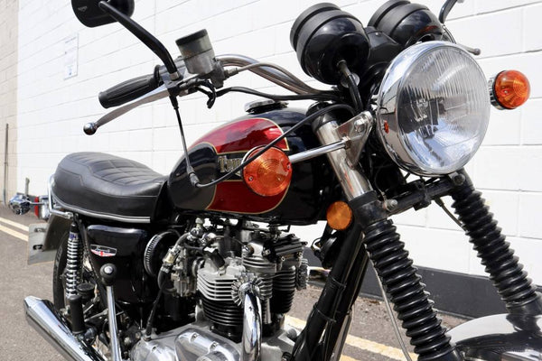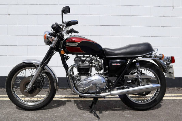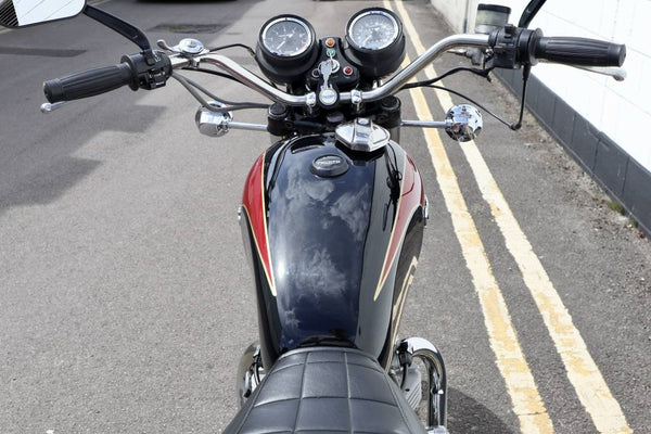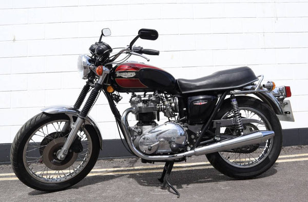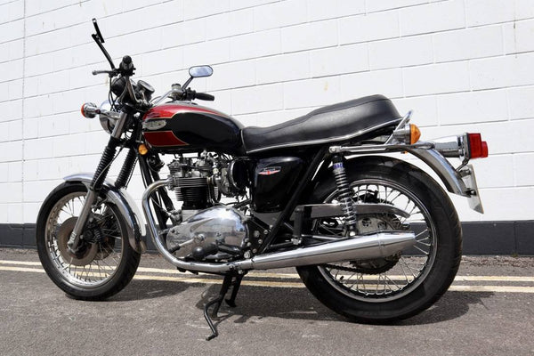 1987 Triumph Harris Bonneville 750cc. In ausgezeichnetem rundum mit geringer Kilometerleistung und passenden Zahlen! Dies ist ein außergewöhnlich originelles Beispiel mit dem großartigen Twin -Disc -Frontend und dem Erbsenschützen -Schalldämpfer. Beginnt leicht und läuft und fährt sehr gut und ist im Grunde genommen ein verbesserter T140. Tolle Maschine und eine großartige Investition, da die Preise von T140 schnell steigen!