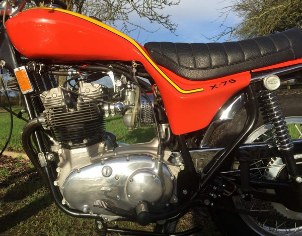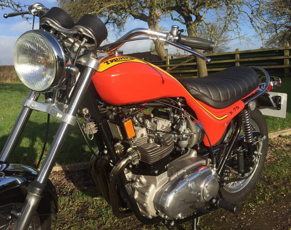 Triumph Hurricane X75 Rep 1969 750cc, passende Zahlen. Das Fahrrad begann das Leben als BSA Rocket 3 und wurde in den Triumph -Hurrikan, den Sie jetzt sehen, umgewandelt. Das Fahrrad ist in der privaten Sammlung und zeigt nur 22 Meilen auf der Uhr. Dies könnte durchaus die wahre Kilometerleistung von New sein, die nur einen Vorbesitzer hatte und den Zustand und die Originalität der gesamten Maschine betrachtete. Es wurde gerade empfohlen, also beginnt der erste Kick und läuft und fährt auch gut. Dies ist wahrscheinlich die beste zum Verkauf und eine seltene Gelegenheit für Sie, eine hervorragende Maschine in die Hände zu bekommen. Dies ist der billigste auf dem Markt zum halben Preis eines Originalrads.