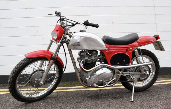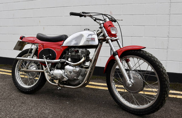 Die Spezifikation umfasst: REH Heck -Hub. Suzuki Twin Leading Front Hub (exzellente Bremse). Morad Alloy Rims. Rostfreie Speichen. Ceriani -Gabeln und Legierungsjoche. Betor Heckschocks. Boyer Zünd- und Powerbox. Legierungskraftstofftank mit modernem Kraftstoff als besser ausgestattet als die Standard -Glasfaser -Tanks. Triumph Rickman Metisse Scrambler's werden sehr schwer zu finden, da sie großartig aussehende Fahrräder und viel Spaß sind, also nicht viele Verkäufer. Startet leicht läuft und fährt großartig. Dies ist ein seltenes Fahrrad und eine großartige Spezifikation. Großer Spaß und eine solide Investition.