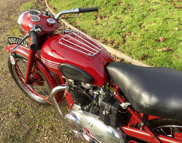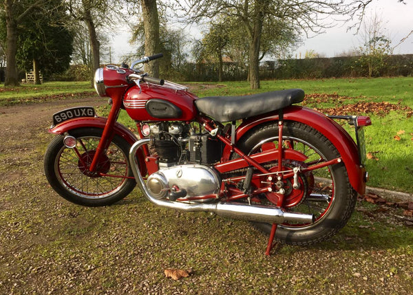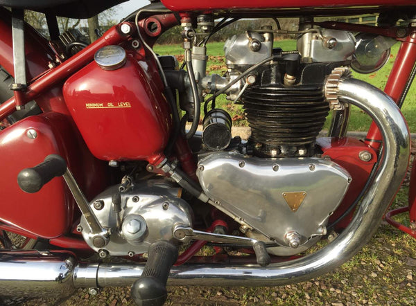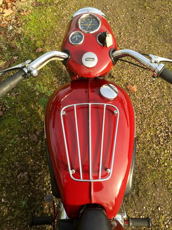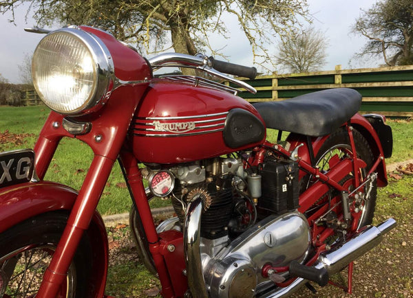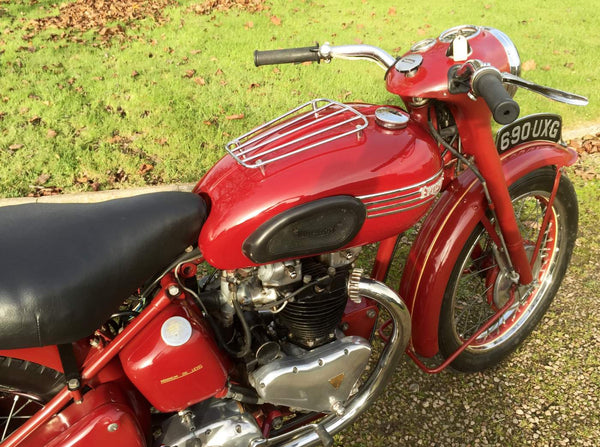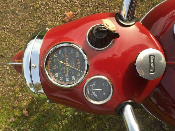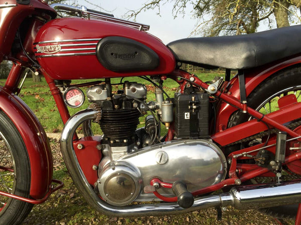 Triumph Speed Twin 1953 Starr gesprungener Hub mit passenden Zahlen in Kastanienbraun. Sehr original restauriert vor einigen Jahren vom Enthusiastenbesitzer. Beginnt leicht und läuft sehr glatt. Diese Speed -Zwillinge der frühen 1950er Jahre sind jetzt schwer zu finden und leicht zu leben. Kommt auch mit seinem ursprünglichen Buff Log Book.