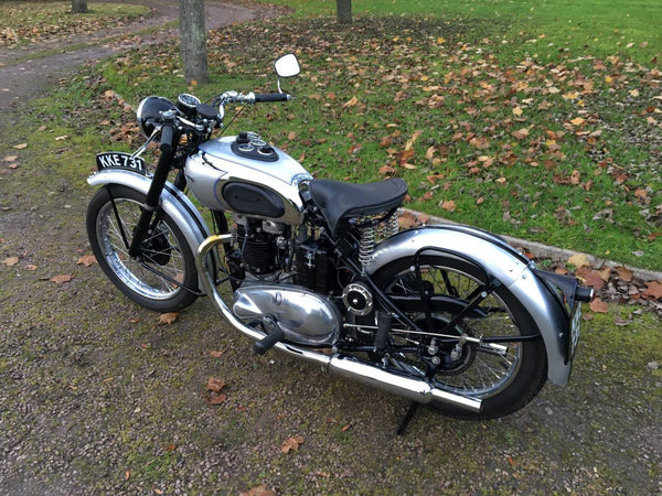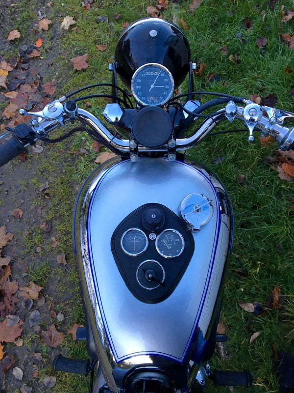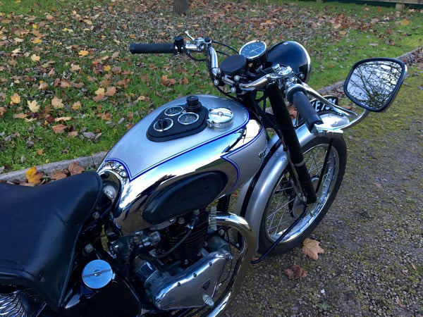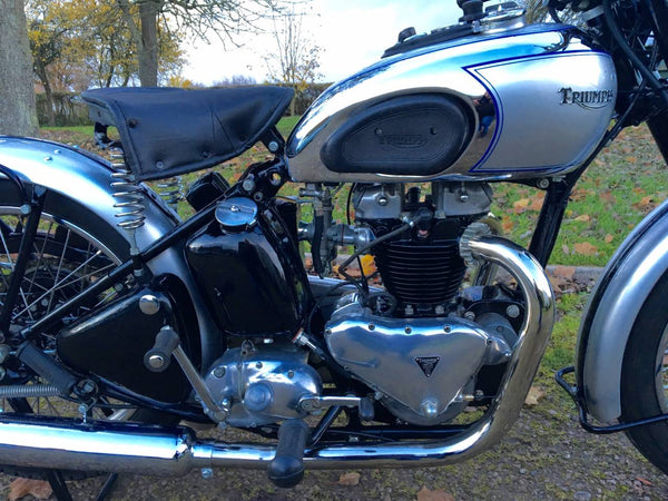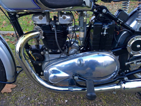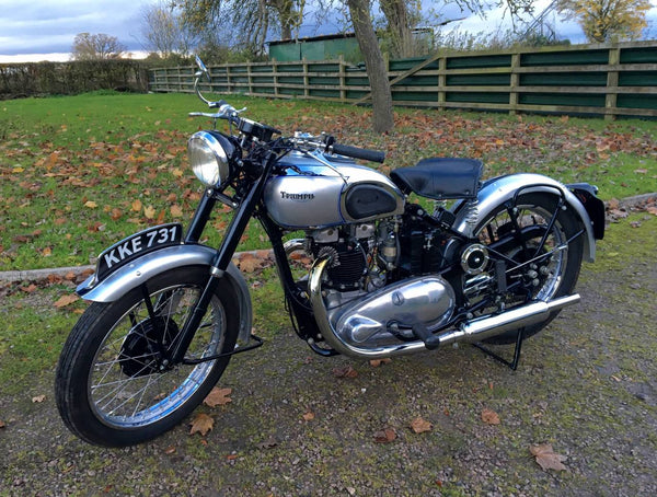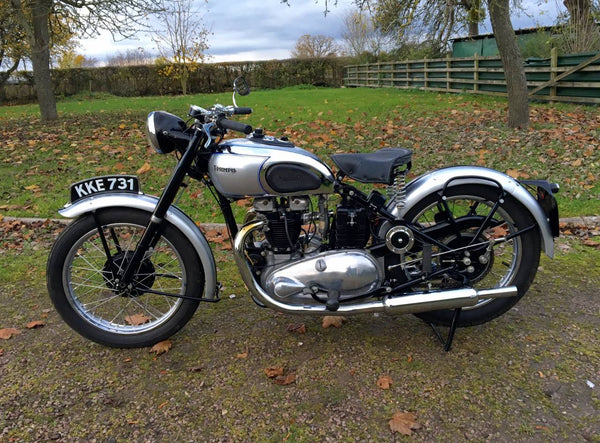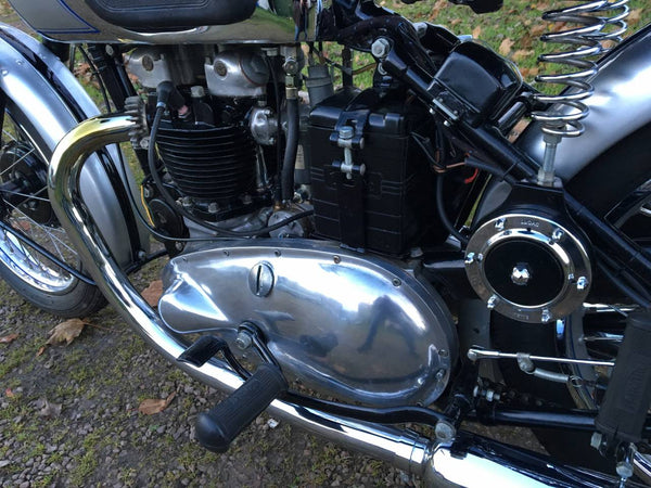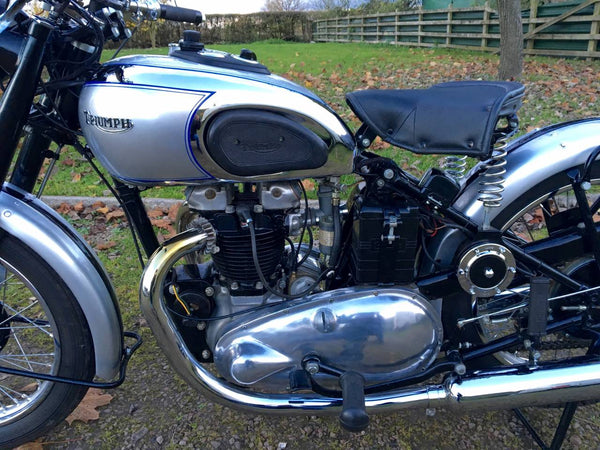 Triumph Tiger 100 1948 registriert als 1947. Mit Triumph Owners Club -Versandrekorde, die korrekte Zahlen bestätigen. Im richtigen Silber- und Chrom -Farbschema, das mit den bemalten und ausgekleideten Radzentren umwerfend aussieht. Kommt mit seiner ursprünglichen Registrierungsnummer. Sehr gut restauriert auf die ursprüngliche Spezifikation (Bar der nicht triumphierenden Ölanzeige) vor einigen Jahren und seitdem nur eine kleine Menge Kilometerleistung bedeckt. Beginnt zuerst Kick, mit einem sehr süßen Motor mit gutem Öldruck und Fahrten, wie es sollte, steuern und motfrei. Diese Tiger mit dem Chromtank und in der Instrumentenpanel sind jetzt selten und schwer zu finden, dass ein korrekt restaurierter als seltener ist als seltener als seltener als Sein Speed Twin Brother. Das Pre -War -Girder -Gabelmodell ist jetzt praktisch nicht zu tun, und wenn Sie ein wiederhergestelltes Beispiel finden könnten, würde dies mehr als 20 K kosten. Dies ist also das nächstbeste! Seien Sie schnell in diesem Fall, da wir glauben, dass es nicht lange auf Lager ist. Der einzige zum Verkauf im Land!