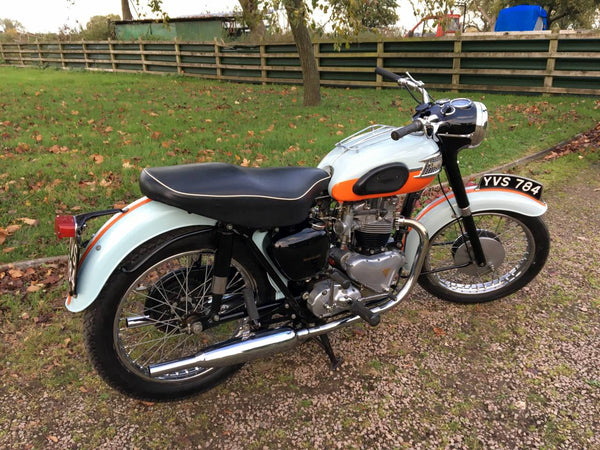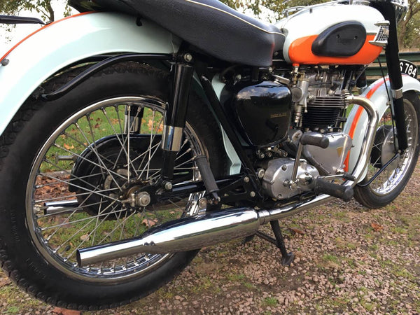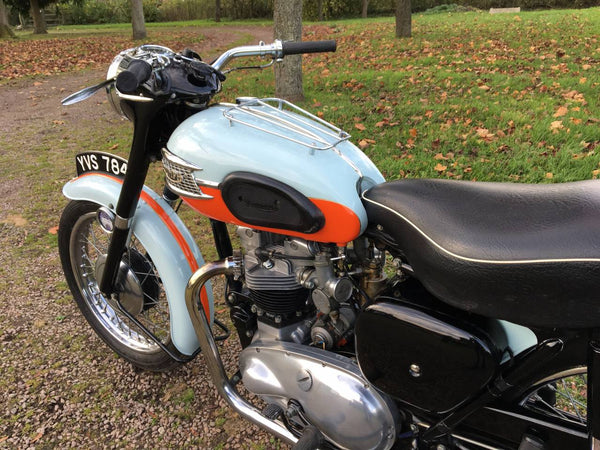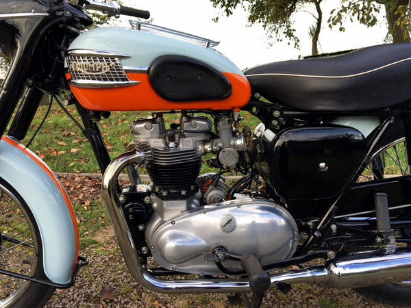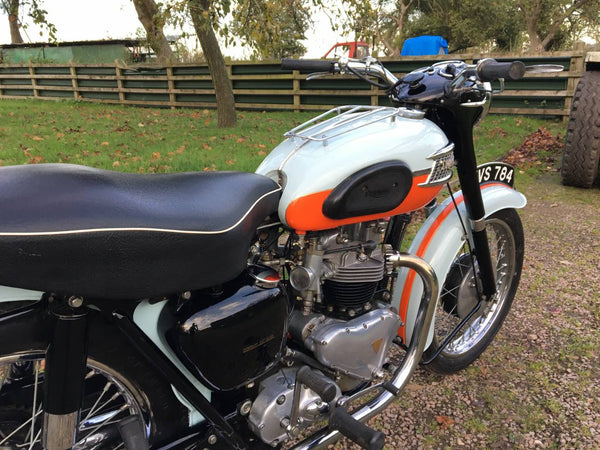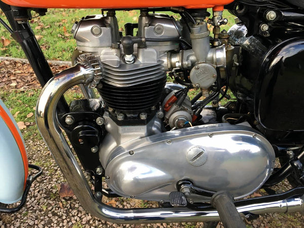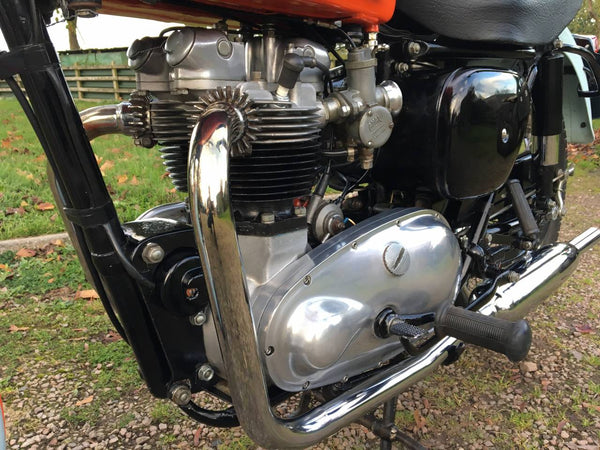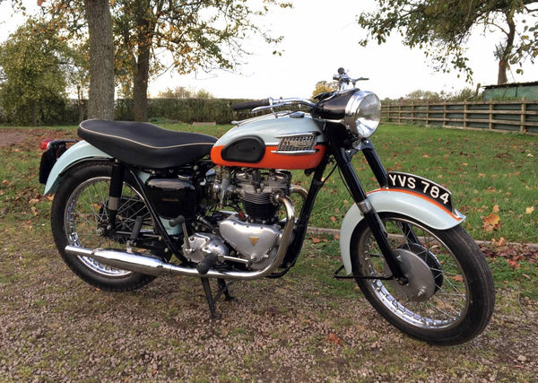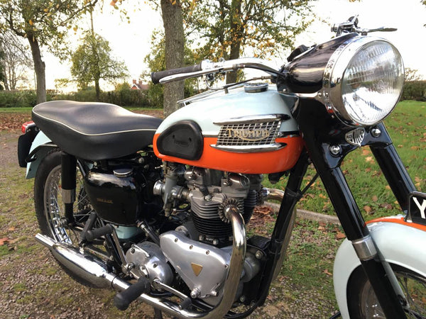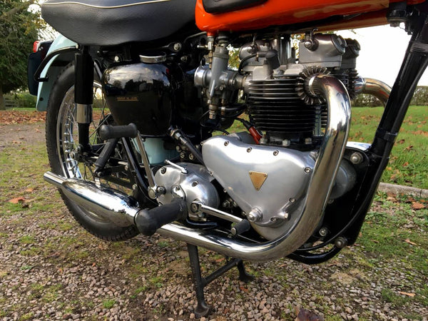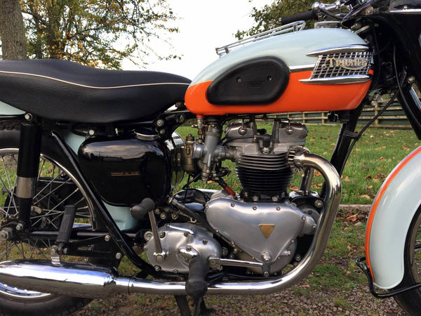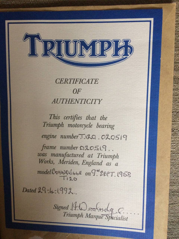 Triumph T120 1958 "Tangerine Dream" Bonneville 650cc. Herstellung am 9. September 1958; Also im ersten Monat der Produktion und wahrscheinlich innerhalb der ersten 50 Bonnies, die jemals hergestellt wurden, so früh und selten! Dann 1959 registriert, wenn er verkauft wird. Kommt mit passenden Nummern und Triumph -Besitzer -Club -Zertifikat der Authentizität, die die oben genannten bestätigen. Vor einigen Jahren restauriert zu Originalspezifikationen mit den Zwillingsamal -Kohlenhydraten und der Fernkammer, wie sie an die Modelle von 1958 vor den späteren mit ihren eigenen Float -Schalen ausgestattet sind. In schönem Zustand und ist leicht zu starten und zu rennen und sehr gut zu fahren. Als 1958 ist Mot und steuerfrei. Eine schöne Maschine, die immer noch schnell und jetzt selten zum Verkauf steht. Eine tolle Investition.