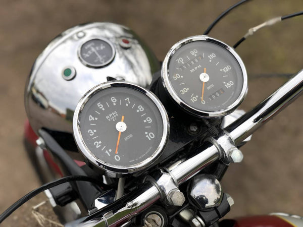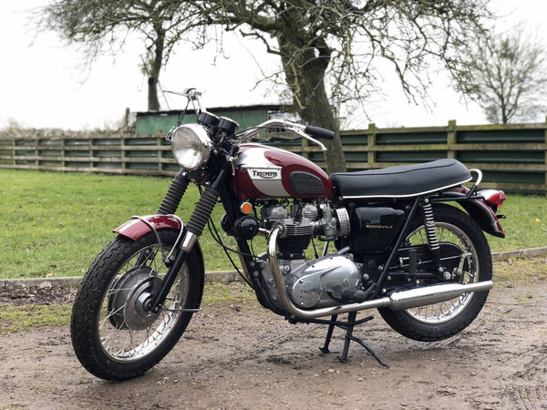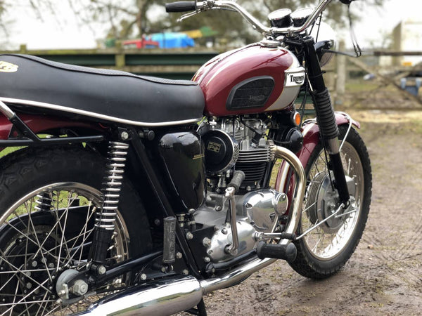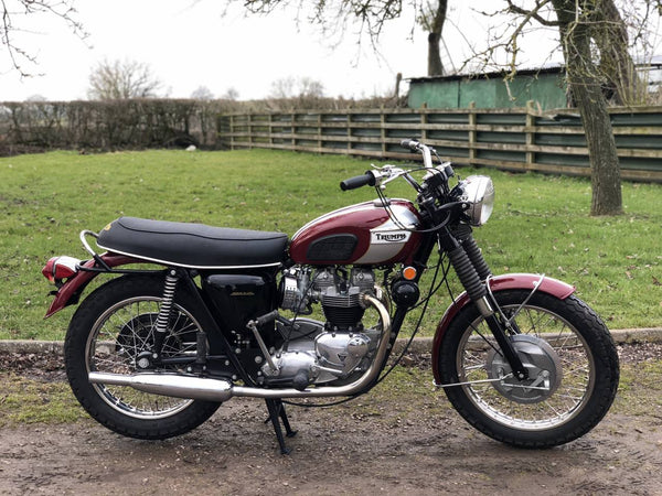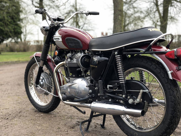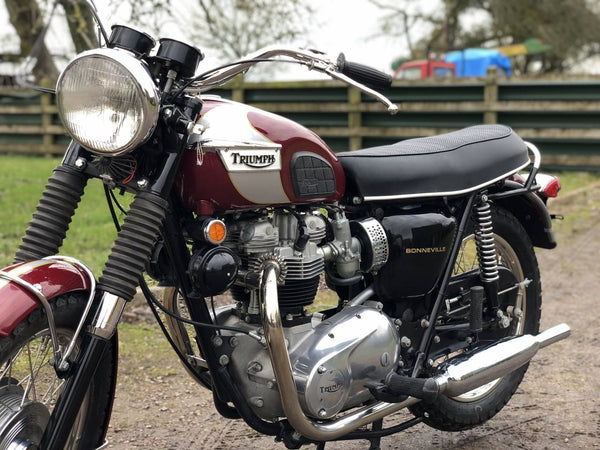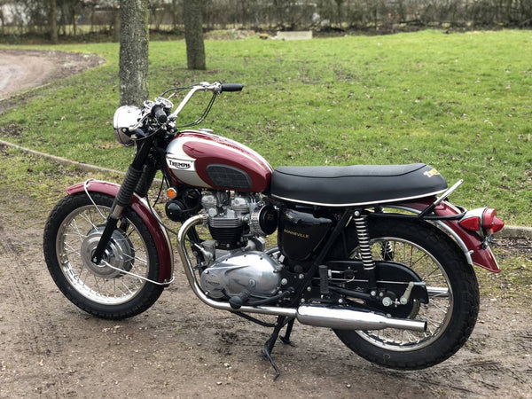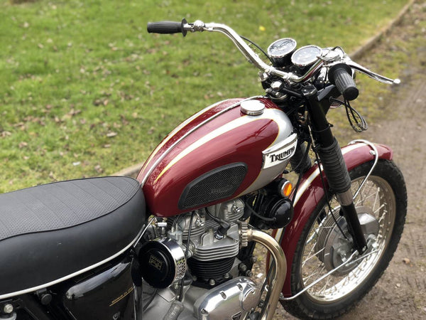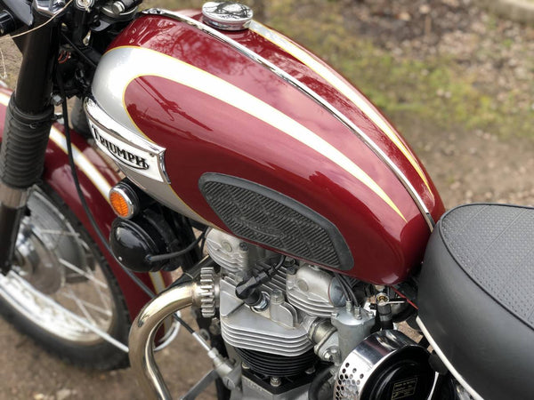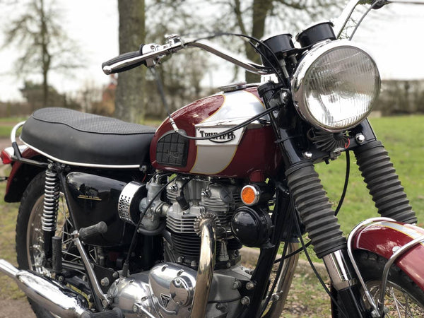 Triumph T120r Bonny 650cc 1970. Dies ist ein makelloses US -Spezifikationsbeispiel mit dem hübschen Tränenpanzer. Es wurde vollständig und sorgfältig wiederhergestellt, zu einem sehr hohen Standard und zu der richtigen Spezifikation von 1970. Es hat passende Nummern, dh die ursprünglichen Fabrikstempel. (Im Gegensatz zu einigen, die wir gesehen haben !!) Die Chrom- und Lackierung sind alle unmarkiert und perfekt!